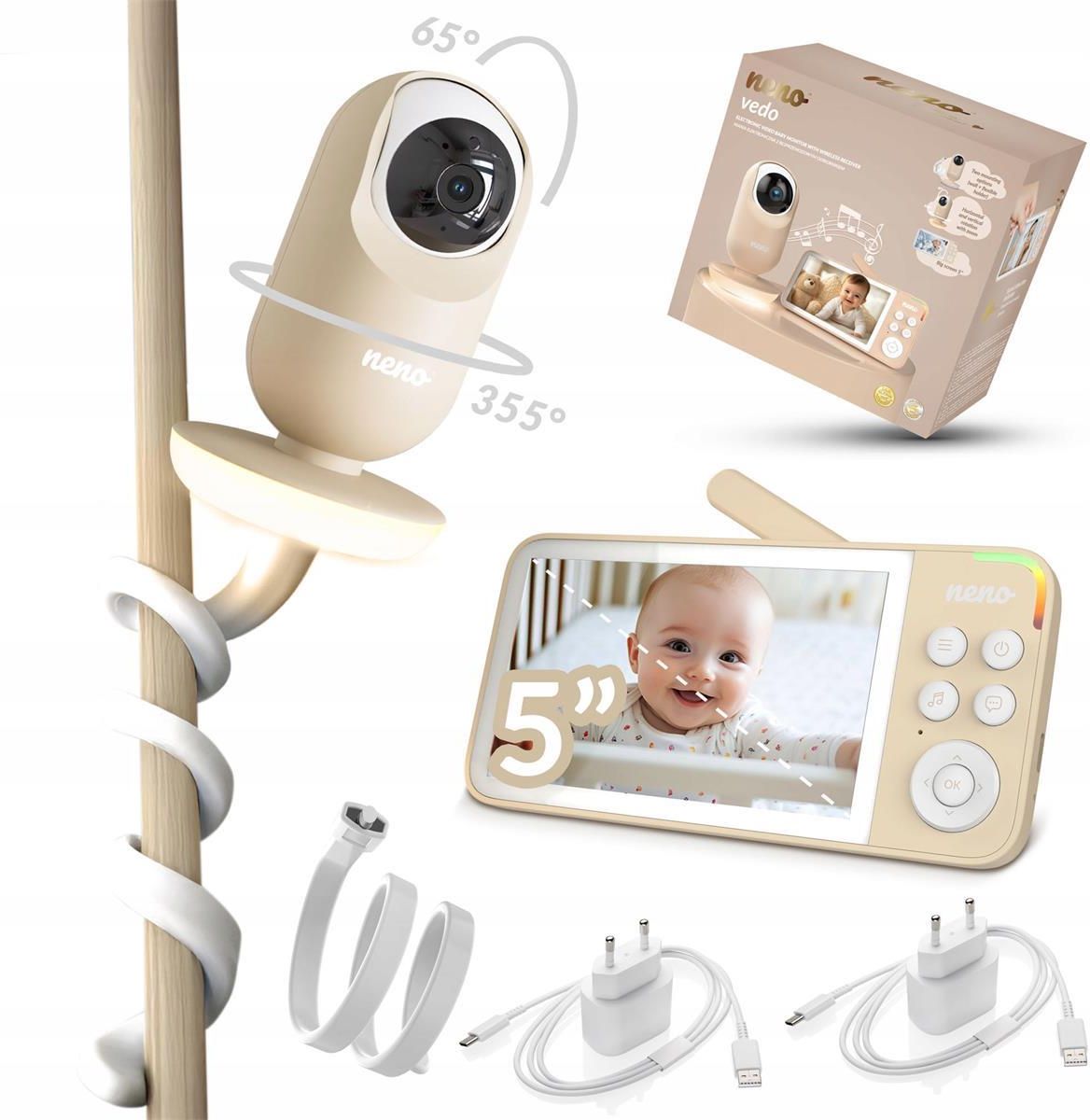 Neno Vedo Cream – elektroniczna niania z bezprzewodowym odbiornikiem Neno Vedo Cream to nowoczesna elektroniczna niania z 5-calowym ekranem i obrotową kamerą, która zapewnia niezawodny podgląd dziecka zarówno w dzień, jak i w nocy. Dzięki funkcjom takim jak tryb nocny, VOX, dwukierunkowa komunikacja i czujnik temperatury, urządzenie wspiera rodziców w codziennej opiece, zapewniając spokój i bezpieczeństwo. Stylowy design i możliwość odtwarzania kołysanek sprawiają, że to nie tylko praktyczne, ale i estetyczne rozwiązanie do każdego dziecięcego pokoju. Neno Vedo Cream – elektroniczna niania z bezprzewodowym odbiornikiem Dwie dodatkowe opcje montażu Obracanie w pionie i poziomie (65 stopni w pionie i 355 stopni w poziomie) Automatyczny tryb nocny Czterokrotne powiększenie Tryb czywania VOX Stała opieka 6 wgranych kołysanek +biały szum Czujnik temperatury Funkcja alarmu Dwukierunkowa komunikacja Inteligentny tryb nocny Dzięki funkcji automatycznego trybu nocnego, Neno Vedo Cream samodzielnie dostosowuje obraz do panujących warunków oświetleniowych. Nawet w całkowitej ciemności urządzenie zapewnia czytelny i wyraźny obraz, co pozwala doglądać malucha bez potrzeby wchodzenia do pokoju i zakłócania jego snu. Duży ekran dla większego komfortu Wbudowany 5-calowy wyświetlacz umożliwia wygodne monitorowanie sytuacji w pokoju dziecka. Obraz jest na tyle duży i wyraźny, że wystarczy jedno spojrzenie, by upewnić się, że wszystko jest w porządku. Obrotowa głowica Kamera obraca się w zakresie 65° w pionie i 355° w poziomie. Sterowanie kątem widzenia odbywa się z poziomu odbiornika i jest bardzo intuicyjne, co pozwala na obserwację całego pokoju – niezależnie od miejsca, w którym znajduje się dziecko. Duży zasięg działania Dzięki niezawodnemu zasięgowi do 50 m w pomieszczeniach i do 300 m na zewnątrz, możesz poruszać się po całym domu czy ogrodzie, zachowując pełen kontakt z tym, co dzieje się w pokoju dziecka. To swoboda, której potrzebujesz, bez kompromisów w kwestii bezpieczeństwa. 4x zoom Gdy chcesz przyjrzeć się bliżej – wystarczy jedno kliknięcie. Funkcja czterokrotnego zoomu pozwala na dokładne obserwowanie szczegółów bez zbliżania się do monitora. Zobacz każdy ruch, uśmiech czy gest, nawet z większej odległości. Tryb czuwania VOX Tryb czuwania VOX sprawia, że ekran włącza się tylko w odpowiedzi na dźwięk. Gdy tylko usłyszy płacz lub inne dźwięki, ekran automatycznie się aktywuje. Dodatkowy wskaźnik świetlny informuje o hałasie nawet wtedy, gdy dźwięk jest wyciszony – to ciche i skuteczne wsparcie na co dzień. Czujnik temperatury Wbudowany sensor na bieżąco monitoruje temperaturę w pokoju dziecka. Masz dzięki temu pewność, że maluch przebywa w odpowiednich warunkach – niezależnie od pory dnia czy roku. Funkcja alarmu Neno Vedo Cream pozwala ustawić przypomnienia, które pomogą ci zadbać o rytm dnia – od karmienia, przez drzemki, aż po wieczorne rytuały. To funkcja stworzona z myślą o komforcie rodziców. 6 wgranych kołysanek + biały szum W urządzeniu zapisanych jest sześć uspokajających melodii oraz opcja odtwarzania białego szumu. To sprawdzone dźwięki, które pomagają dzieciom szybciej zasnąć i dłużej spać spokojnie – idealne zarówno do drzemki, jak i wieczornego wyciszenia. Delikatne światło Subtelne oświetlenie, które emituje Neno Vedo Cream, może pełnić funkcję nocnej lampki. Jest na tyle łagodne, że nie zakłóca snu dziecka, a jednocześnie pozwala bezpiecznie wejść do pokoju czy przewinąć niemowlę. Zawsze w swoim miejscu Niania może zostać postawiona na meblu, przymocowana do ściany lub zawieszona w dogodnym miejscu. Dzięki elastycznemu uchwytowi bez problemu dopasujesz ustawienie urządzenia do wnętrza i własnych potrzeb. Dwukierunkowa komunikacja Dzięki funkcji dwukierunkowej komunikacji możesz mówić do dziecka bez potrzeby fizycznego wchodzenia do jego pokoju. To idealne rozwiązanie, gdy chcesz uspokoić malucha lub dać mu znać, że jesteś blisko. Dane techniczne Wyświetlacz: 5 cali Zasilanie: 100-240 V, 50-60 Hz Napięcie wejściowe: 100-240 V, 50-60 Hz Zasięg sygnału: do 300 m (na zewnątrz), do 50 m (wewnątrz) Kąt obrotu kamery: 355° (w poziomie), 90° (w pionie) Rozdzielczość monitora: 480×854 px Wbudowany akumulator: Li-Ion 3000 mAh Zakres częstotliwości: 2410-2477 MHz Tryb nocny: Tak, do 5 m Temperatury pracy: -10~40°C Wymiary: 159x78x17 mm (odbiornik), 87x87x148 mm (kamera) Waga: 165 g (odbiornik), 260 g (kamera) Wymiary pudełka: 178x167x103 mm