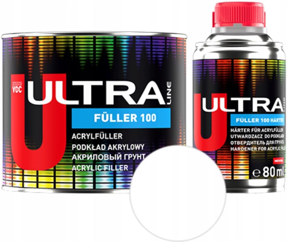 PODKŁAD AKRYLOWY NOVOL ULTRA FULLER 100 BIAŁY 400 ml + 80 ml Podkład 400 ml + Utwardzacz 80 ml Kolor Biały NOVOL ULTRA FULLER 100 podkład na bazie żywic akrylowych o zmniejszonej zawartości części lotnych. Dzięki wysokiej lepkości natryskowej pozwala na nanoszenie bardzo grubych warstw, doskonale wypełniających nawet dość duże rysy i nierówności podłoża. Podkład ULTRA FULLER 100 może być stosowany jako podkład pod lakiery bazowe i emalie 2K, można również nakładać w wersji gruntującej. Posiada bardzo dobrą przyczepność do różnego rodzaju podłoży. Stosowane podłoża Stare powłoki lakierowe Szpachlówki poliestrowe Laminaty poliestrowe Tworzywa sztuczne Stal Grunty reaktywne Podkłady epoksydowe dwukomponentowe