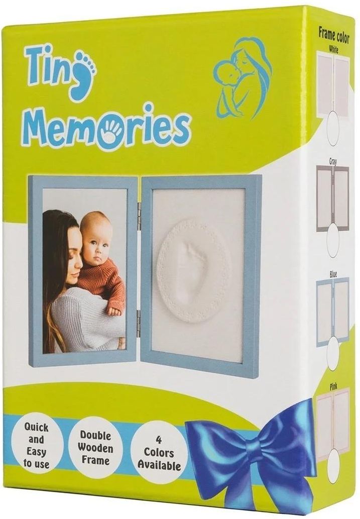 Nowa Marka Tiny Memories przedstawia Państwu zestaw do samodzielnego, szybkiego i niezwykle prostego wykonania pamiątkowego odcisku rączki, stópki nawet u bardzo małych dzieci. Nasz produkt stanowi podwójna ramka, wykonana z naturalnego drewna. Ramki dostępne są w jednym z czterech kolorów - do wyboru biały, szary, niebieski i różowy. W zestawie znajduje się także wyjątkowo miękka i plastyczna glinka, oczywiście przebadana w Polsce zgodnie z najnowszą normą unijną dotyczącą zabawek. Jest ona bardzo delikatna i plastyczna, dzięki czemu nawet najmniejsze maluchy wraz z rodzicami będą miały fantastyczną zabawę podczas wykonywania pamiątkowego odcisku. Dużym atutem naszej glinki jest także to, że nie ma potrzeby jej wypalać. Jest ona tak przygotowana, aby wysychała samoczynnie na powietrzu. Każdy z zestawów zawiera szczegółową instrukcję obsługi oraz umieszczony jest w przepięknym opakowaniu. Nasz produkt może śmiało stanowić uroczy prezent dla Maluszka, jak również być niespodzianką sprawioną mu przez rodziców.