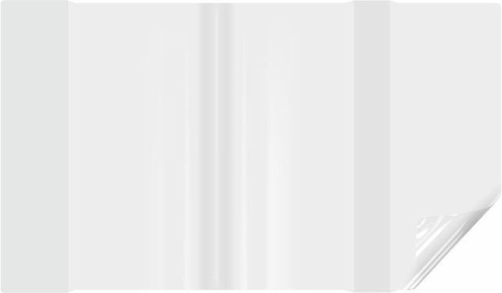 Wykonana z przezroczystej folii PVC. Bezbarwne zakładki. Z jednej strony okładki możliwość regulowania. Uskok zapobiegający zaginaniu się okładki. Łatwoodlepny kod kreskowy na każdej sztuce. Wymiary: 420x393 mm