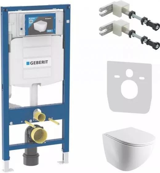 Stelaż podtynkowy: rama samonośna malowana proszkowo z nawierconym otworem ø 9 mm do zamocowania w konstrukcji drewnianej, przygotowana pod wsporniki do misek ustępowych o małej powierzchni przylegania nogi montażowe ocynkowane o regulowanym położeniu w zakresie 0–20 cm, z funkcją samohamowania stopy z możliwością zmiany pozycji głębokość stóp odpowiednia do montażu w profilach U UW 50 i UW 75 oraz szynach systemowych Geberit Duofix Kolano przyłączeniowe z możliwością montażu na różnych głębokościach bez użycia narzędzi, zakres regulacji 45 mm mocowanie kolana przyłączeniowego izolowane akustycznie spłuczka podtynkowa uruchamiana z przodu z izolacją przeciwroszeniową w przypadku ustawień fabrycznych ponowne spłukiwanie możliwe natychmiast możliwość zredukowania ilości wody spłukującej do 4 / 2 l prace montażowe i serwisowe przy spłuczce podtynkowej bez użycia narzędzi przyłącze wody z tyłu lub na górze na środku obudowa ochronna otworu rewizyjnego chroni przed wilgocią i zabrudzeniami z możliwością skrócenia wyposażono w rurkę ochronną umożliwiającą szybkie podłączenie wody do toalet myjących Geberit AquaClean z możliwością zamocowania przyłącza elektrycznego do kompletowania z przyciskiem spłukującym Miska WC wisząca: materiał: ceramika długość: 54 cm szerokość: 36,5 cm wysokość: 40 cm wirowy system spłukiwania w technologii SILENT POWER™ bezkołnierzowa konstrukcja innowacyjny system ukrytych mocowań deska wolnoopadająca z systemem łatwego wypinania spójna kolorystyka: biały przycisk do mocowania, białe matowe rozety kolor: biały połysk Deska WC: wolnoopadająca materiał: duroplast zawiasy wypinane ze stali nierdzewnej mocowane od góry kolor: biały połysk Wsporniki dystansowe: regulacja głębokości 13-20 cm materiał cynkowy odlew ciśnieniowy do mocowania elementów montażowych Geberit Duofix przed ścianami gipsowo-kartonowymi i ścianami pełnymi do mocowania w ściance instalacyjnej na wysokość elementu montażowego płynna regulacja głębokości od przodu, z szybkim ustawieniem mocowanie do ściany obracane o 360° pręt gwintowany M10, ocynkowany 2 sztuki w zestawie Zestaw do izolacji akustycznej: przekładka akustyczna do miski WC lub bidetu wiszącego kolor: biały