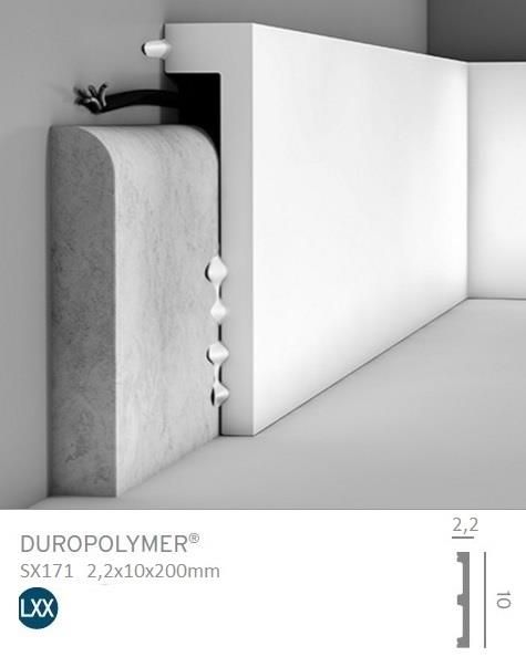 Listwa przypodłogowa SX171 Orac Decor 10cm Orac Decor Symbol: SX171 Materiał wykonania: Duropolymer Malowanie: możliwe Kolor: Biały Długość (cm): 200 Wysokość (mm): 100 Szerokość (mm): 22 Właściwości: Odporność na wilgotność i uderzenia Listwa przypodłogowa SX171 osłaniająca. Idealna do projektów renowacyjnych. Listwa jest wodoodporna i dostosowana do malowania. SX171 została stworzona jako listwa osłaniająca istniejącą listwę przypodłogową (maks. 1,4 x 8,8 cm) w celu zakrycia starej lub ciężkiej do demontażu listwy lub w celu zagospodarowania niewidocznego okablowania. Listwa jest zwycięzcą nagrody Smart Design Award na Intirio 2016! Duropolymer® uwielbia farbę, jest zagruntowany i łatwy do wykończenia za pomocą każdej farby wysokiej jakości, ale nigdy nie robi się mokry, jest wodoodporny i zachowuje swoje wymiary. Materiał wyróżnia się dzięki ostrym krawędziom i drobnym detalom, które tworzą strukturę wysokiej jakości i jest odporny na uderzenia, zderzenia i zarysowania. Tworzywo jest lekkie i łatwe w montażu dzięki klejom Orac Decor DecoFix. Duropolymer® jest produkowany z materiałów ze zintegrowanego recyklingu, w 100% nadaje się do recyklingu i nie zawiera toksycznych substancji. Zalety produktów Orac 1. ŁATWY MONTAŻ Produkty są łatwe w obróbce i montażu. Orac oferuje akcesoria ułatwiające proces montażu. 2. GOTOWE DO MALOWANIA Wszystkie listwy pokryte są specjalnym, zabezpieczającym środkiem, ułatwiającym absorpcję farby. 3. ODPORNOŚĆ NA PĘCZNIENIE listwy nie ulegają odkształcaniu, rozwarstwianiu i pęcznieniu pod wpływem wilgoci. 4. WODOODPORNE MATERIAŁY Produkty są wodoodporne, dlatego mogą być montowane w pomieszczeniach o podwyższonej wilgotności. 5. NIEWIDOCZNE POŁĄCZENIA przy zastosowaniu oryginalnego kleju montażowego Orac FDP500 Decofix Pro oraz kleju do łączeń (spoinowania) Orac FX200 DecoFix Extra możemy uzyskać porządany efekt ułożenia listew z niewidocznymi łączeniami. 6. LISTWY Z ATESTAMI HIGIENICZNYMI atest zaświadcza o jego bezpieczeństwie dla zdrowia ludzi oraz środowiska. 7. GWARANCJA ZADOWOLENIA I SATYSFAKCJI 8. PEWNE OPAKOWANIE. Polecane kleje Listwy oraz sztukaterię montujemy za pomocą kleju montażowego Orac FDP500 Decofix Pro. W zależności od podłoża tubka kleju starcza na ok. 4 listwy (8-9 mb listwy). Klej nakładamy po długości listwy. (nigdy nie nakładamy kleju punktowo). Listwy łączymy ze sobą lub szpachlujemy za pomocą kleju do łączeń Orac FX200 DecoFix Extra. Jedno opakowanie kleju wystarcza na połączenie średnio ok 80 metrów listew) INSTRUKCJA MONTAŻU Listwy powinny być aklimatyzowane przez około 48 godzin w pomieszczeniu, w którym będą montowane. Przykładamy listwę do rogu sufitu i ściany w pozycji montażowej. Obrysowujemy dolną i górną krawędź wzdłuż listwy aż do przeciwległej ściany, na której będziemy montowali drugą listwę. Analogicznie postępujemy na drugiej prostopadłej ścianie. Uzyskujemy w ten sposób obrys i linie (kąty) montażu i cięcia listew względem siebie. Dolny punkt linii cięcia listwy znajduje się w samym narożniku tj. w punkcie łączenia dwóch ścian. Górny punkt linii cięcia listwa znajduje się na narysowanym w pkt 3 przecięciu linii krawędzi górnej listew (na suficie) pod kątem 90 stopni. Cięcia dokonujemy na ukośnicy lub na odpowiednio dużym w stosunku do wysokości listwy korycie uciosowym. Klej Orac FDP500 Decofix Pro nakładamy po długości na lewej stronie profilu w miejscu styku z klejonym podłożem. Klej nakładamy faliście (ewentualnie liniowo w przypadku niewielkich listew o małej powierzchni klejenia). Listwę mocno dociskamy do podłoża. Zbieramy nadmiar wyciśniętego kleju. Postępujemy analogicznie w przypadku drugiej ściany. Przykładamy i doklejamy drugi profil, odpowiednio docięty do łączonej listwy. Łączenie dwóch listew wypełniamy klejem Orac FX200 DecoFix Extra, dociskając następne do siebie obie listwy. Nadmiar kleju zbieramy. Po 1-2 godzinach należy skontrolować i ewentualnie zebrać nadmiar kleju DecoFix Extra. Szczelinę pomiędzy ścianą\sufitem a listwą, oraz pomiędzy dwoma listwami, obrabiamy przy pomocy kleju Decofix Pro. Zbieramy nadmiar kleju.