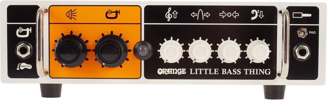 Orange LITTLE BASS THING Orange Little Bass Thing to wzmacniacz basowy typu head skierowany do współczesnhych muzyków poszukujących wielkich możliwości w niewielkich gabarytach. LITTLE BASS THING to kompaktowy wzmacniaczbasowy typu head. Swoją premierę miał w styczniu podczas NAMM Show 2020. Wykorzystuje potężny przedwzmacniacz półprzewodnikowy i końcówkę mocy 500 Watt pracującą w klasie D. Ta niewielka głowa basowa posiada na froncie: wejście instrumentalne z przełącznikiem PAD o czułości -6 dB, 3-pasmowy korektor z pół parametrycznym środkiem, kompresor, regulację głośności, wejście na opcjonalny footswitch, którym można aktywować lub dezaktywować kompresor. Na panelu tylnym są: symetryczne wyjście DI typu XLR, włącznik uziemienia, złącza pętli efektów (Send, Return), dwa wyjścia głośnikowe typu Speakon oraz włącznik i gniazdo zasilania. Orange Little Bass Thing także świetnie sprawdzi się w studio jako preamp, gdy zostanie użyty bez podłączonej kolumny. To maleństwo ma wymiary 27.6 cm x 8.5 cm x 25.1 cm i waży niecałe 3 kg! Parametry CechySingle Channel – Class D power amp, foot-switchable (sold separately) compression , variable input sensitivity for active or passive basses, balanced di out, fx loop KontrolkiVolume, Compression, Treble, Frequency, Middle, Bass, PAD Moc500 Watts RMS | Total Minimum Impedance: 4 Ohms Wymiary27.6 cm x 8.5 cm x 25.1 cm Waga2.95 kg