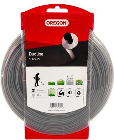 Żyłka do kos i podkaszarek OREGON® Duoline łączy w sobie cechy dwóch materiałów o różnych właściwościach fizycznych, zapewniając bardzo wysoką trwałość cenioną przez profesjonalnych, jak i okazjonalnych użytkowników kos. Żyłka tnąca Duoline posiada twardą powłokę o doskonałej odporności na ścieranie oraz syntetyczny rdzeń o dużej wytrwałości na rozerwanie. Wykonano ją z materiałów zwiększających odporność żyłki na topnienie. Parametry techniczne Długość: 60m Przekrój: okrągły Średnica: 3,0mm Opakowanie: zwitek Zastosowanie: chaszcze, chwasty Żyłka do kos OREGON Duoline wyróżnia się spośród produktów innych marek Twardszą powłoką o doskonałej odporności na ścieranie. Wytrzymałym rdzeniem o dużej odporności na rozerwanie. Wysoką trwałością. Wysoką odpornością na zgrzewanie. Optymalnym rozkładem gęstości wzdłuż średnicy. Przeznaczenie żyłki tnącej OREGON Duoline Regularne koszenie przydomowych trawników. Wykaszanie trawników o średnim poziomie zachwaszczenia. Nieregularne wykaszanie wysokich traw i średniej wielkości zarośli. Koszenie w warunkach zwiększających ryzyko zerwania żyłki. Koszenie w wysokich temperaturach pracy.