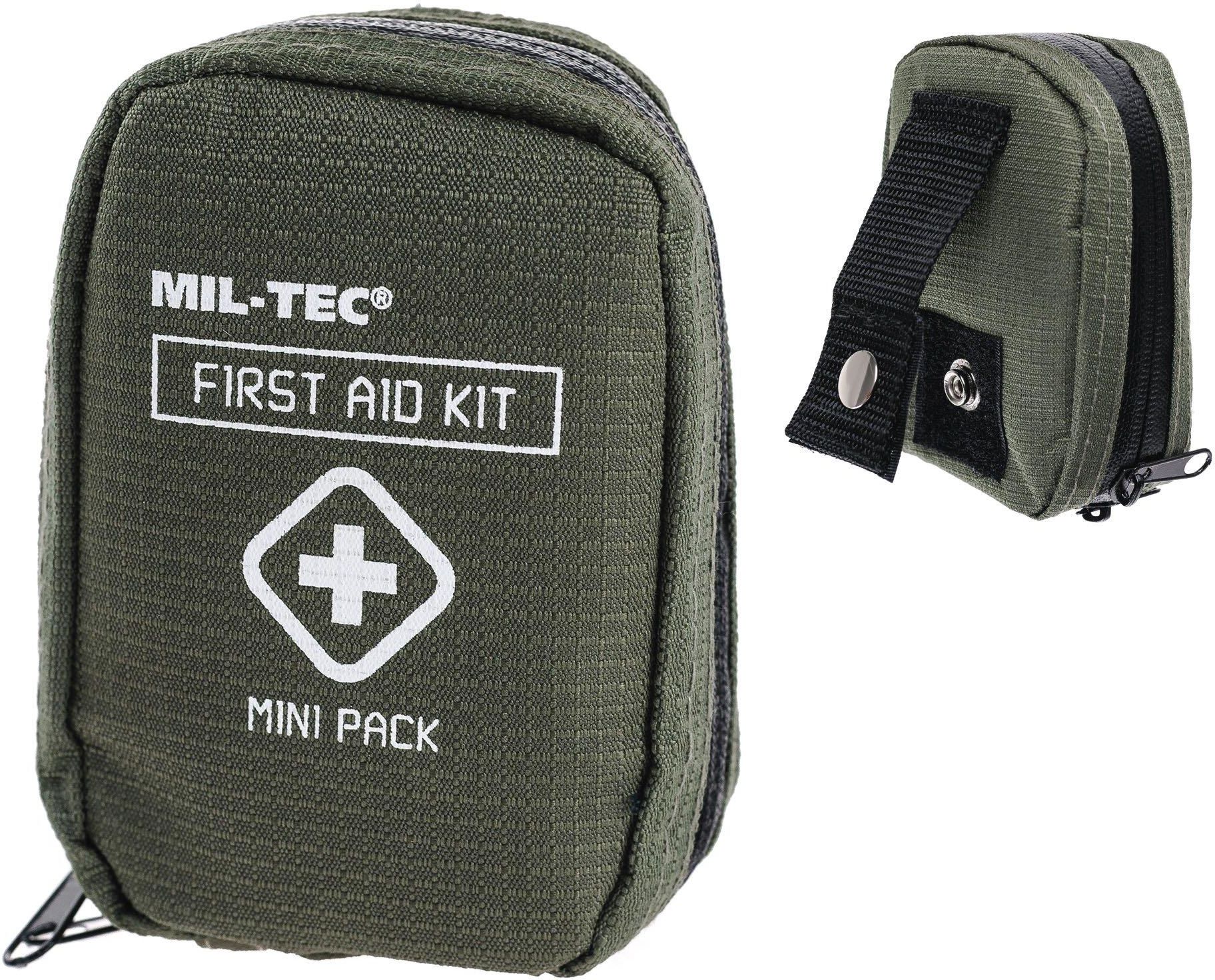 Miniaturowa apteczka wykonana z Ripstopu z zapiciem zabezpieczonym przed zachlapaniem wyprodukowana przez Mil-Tec. Apteczka posiada moliwo zamontowania na powierzchniach wyposaonych w tamy systemu MOLLE / PALS. W skad wyposaenia wchodzi: - 1 opatrunek 50 x 50 mm - 6 agrafek - 5 ciereczek czyszczcych - 1 rolka plastra 40 mm x 1 m - 1 banda 75 mm x 4.5 m - 1 para winylowych rkawiczek - 1 plaster samoprzylepny - 1 para noyczek Dane techniczne: - waga: 125 g - wymiary: 125 mm x 85 mm - kolor: Zielony OD