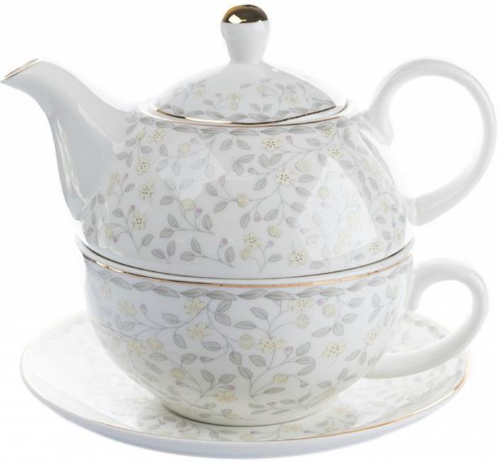 3-elementowy zestaw do herbaty(tzw. tea for one) składający się z czajniczka oraz filiżanki ze spodkiem. Produkt wykonany z dobrej jakości porcelany kostnej średniej t. "Fine Bone China" o ładnym motywie, z delikatnymi złoceniami obrzeży elementów zestawu. Komplet marki P4Y, której design tworzony jest na Wyspach Brytyjskich, ale produkcja odbywa się w Chinach.Produkt firmowany przez P4Y - globalną, chińską marką pod którą sprzedawana jest biała i dekoracyjna porcelana stołowa oraz porcelanowe i z żywicy syntetycznej/konglomeratu figurki, m.in. tworzone według grafik cenionej angielskiej artystki Diane Melville Kaye(Di Kaye).Podstawowa specyfikacja: pojemność czajniczka = około 400ml pojemność filiżanki = około 250ml średnica spodeczka = około 16cm rodzaj porcelany: średniej grubości, kostna, biała i połyskująca, dobrej jakości użytkowanie: ze względu na nietrwałe złocenia sugerujemy mycie ręczne opakowanie: kartonowe