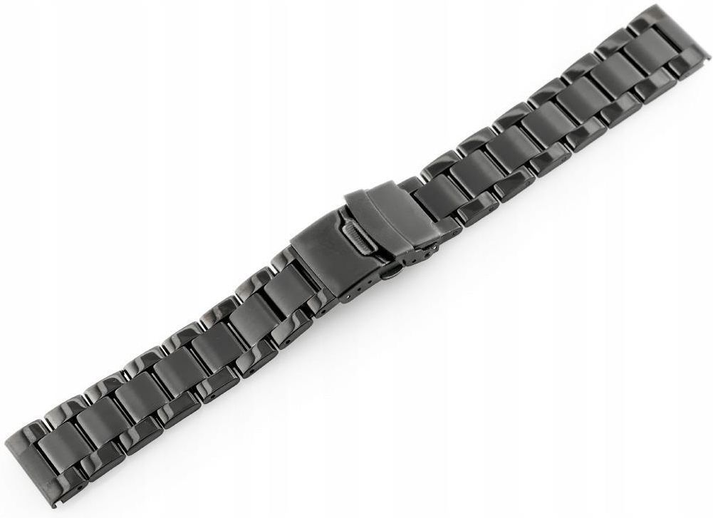 Bransoleta Pacific M3 - Solid Steel - czarna 20mm Opis produktu WYMIARY: szerokość przy mocowaniu: 20mm szerokość bransolety: 20/18mm długość całkowita po rozłożeniu: 249mm maksymalny obwód: ok. 184mm (do obwodu należy doliczyć rozmiary koperty docelowego zegarka) OPIS: Stalowa bransoletka do zegarka wysokiej jakości w kolorze czarnym - powlekana metodą PVD. Możliwość skrócenia bransolety poprzez przesunięcie teleskopu na zapięciu lub usunięcie ogniw - można usunąć maksymalnie 6, szerokość jednego ogniwa to ok. 10mm. Do paska dokładamy 2 teleskopy gratis ! GALERIA PRODUKTU: