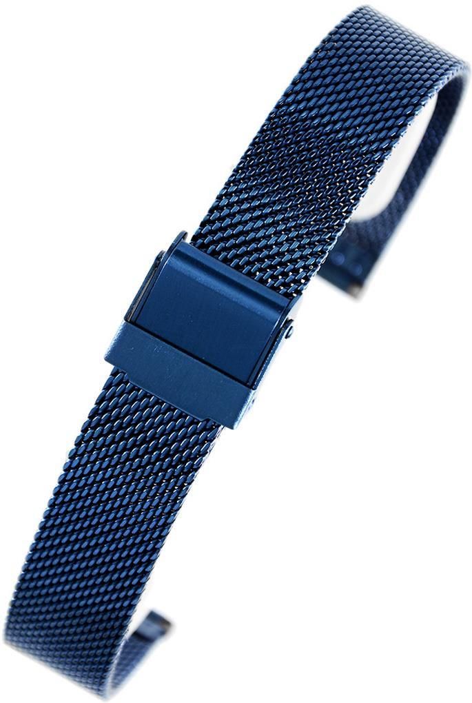 Stalowa bransoletka typu mesh z dodatkowym zamknięciem Pasuje zegarków ze standardowym mocowaniem 12 mm. Producent PACIFIC. Materiał: Stal. Kolorystyka: Kolor granatowy, Wymiary: szerokość przy mocowaniu: 12 mm długość części z zapinką: 86 mm długość części z regulacją: 105 mm