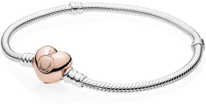 Bransoletka damska o splocie wężykowym z zapięciem w kształcie serca Pandora 580719-17 srebrna