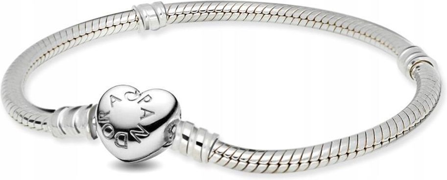 Bransoletka Pandora Moments - Z zapięciem w kształcie Serca 590719 17 cm Romantyczna wersja bestsellerowej bransoletki do charmsów Pandora. Wykończona ręcznie, z zapięciem w kształcie serca, wężykowa bransoletka ze srebra próby 925 wygląda olśniewająco bez dodatków, ale jeszcze lepiej po …