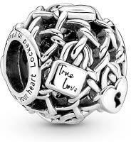 Pandora Charms ażurowe łańcuszki z kłódką Opis produktu: Rodzaj: Charms Oznaczenie: 790071C00 Seria: Pandora Moments Materiał: Srebro 925 Stan: Nowy Czy nowe charmsy to klucz do Twojego serca? Odkryj nowe możliwości stylizacji dzięki charmsowi z ażurowymi łańcuszkami i kłódkami. Ten srebrny, misternie wykonany ażurowy wzór zachwyca motywem kłódek, przywodzącym na myśl słynne na całym świecie mosty zakochanych. Grawerowane napisy „Locked in your heart (Zamknięty w Twoim sercu), „True love” (Prawdziwa miłość) i „Love you” (Kocham Cię) sprawiają, że to idealny charms do upamiętniania sentymentalnych wspomnień. Wybierając nas masz pewność, że kupujesz w 100% oryginalny produkt. W skład zestawu wchodzi: Oryginalne pudełko PANDORA Certyfikat autentyczności (tylko na życzenie klienta oraz w zależności od dostępności) Metka