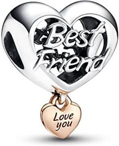 Charms Pandora - Kocham Cię Przyjaciółko 782243C00 Ten srebrno-złoty charms symbolizuje nieskończoną przyjaźń i radość, jaką wnosi ona do serca. Pod srebrnym sercem z wygrawerowanym napisem „Best Friends” kołysze się serce platerowane 14-karatowym różowym złotem. Noś go na ulubionym uchwycie i …