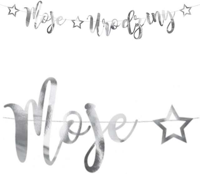 Baner Moje urodziny, srebrny, 16,5x90cm Baner przeszywany Moje urodziny to idealny dodatek do każdego przyjęcia urodzinowego. Wykonany z wysokiej jakości papieru lustrzanego w kolorze srebrnym, zapewni świetny i zabawny efekt wizualny. Baner ma wymiary ok. 16,5 cm wysokości i 90 cm długości, dzięki czemu doskonale będzie się prezentował na ścianie lub na stole. Z pewnością będzie to wspaniały dodatek, który uczyni każdą urodzinową imprezę jeszcze bardziej niezapomnianą i wyjątkową.