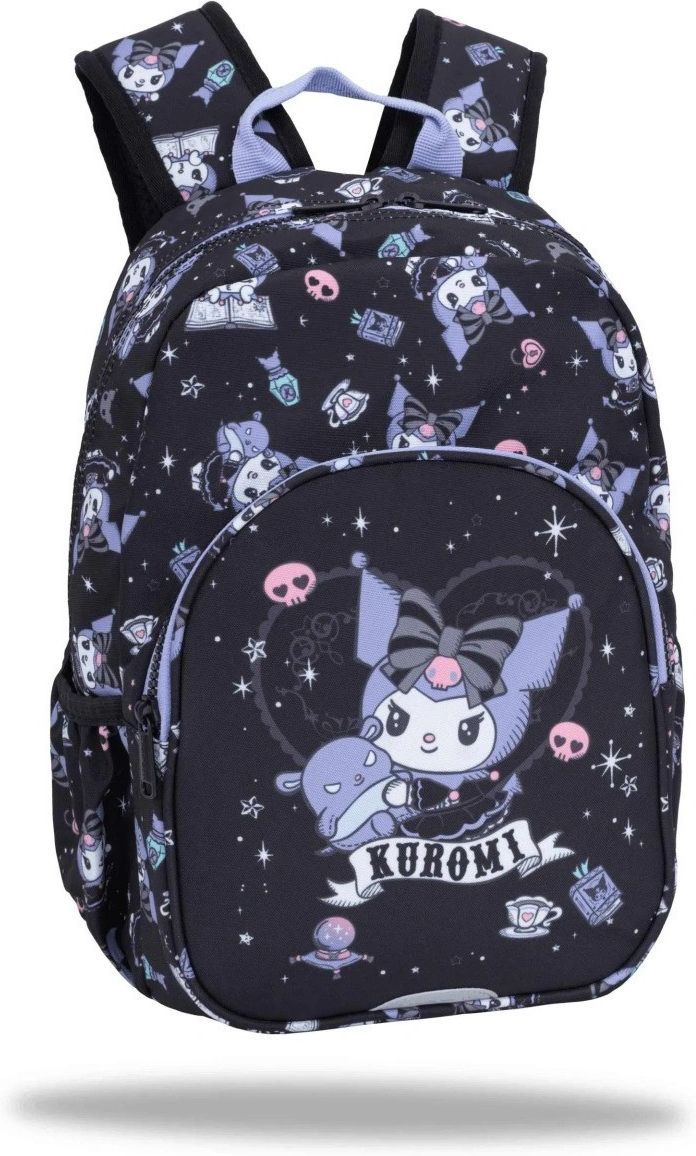 CoolPack Toby Plecak Szkolno-Wycieczkowy Kuromi F023031 Plecak Toby Kuromi – mały, ale z charakterem! 13″ słodkiego buntu Przedstawiamy Toby Kuromi – idealny plecaczek dla małych i dużych fanek Kuromi, które chcą nosić swój ukochany charakterek wszędzie ze sobą! Najważniejsze cechy: Rozmiar 13″ – kompaktowy, ale zaskakująco pojemny (wymiary: 35 × 26 × 12 cm) 1 główna komora – zmieści zeszyty A4, tablet, bidon, śniadaniówkę i wszystkie drobiazgi na co dzień Wyściełane plecy i spód - wygodnie przylega do pleców, nawet gdy biegniesz na WF lub na zbiórkę z koleżankami Wyściełane, regulowane szelki – delikatne dla ramion, z możliwością idealnego dopasowania Przednia kieszeń na zamek – szybki dostęp do kluczy, telefonu, chusteczek czy glossu Dwie boczne kieszonki elastyczne – idealne na bidon 0,5–0,75 l lub ulubiony shaker z shake’iem Solidny materiał 600D poliester – wytrzymały, odporny na przetarcia i lekkie zachlapania Zalecane czyszczenie ręczne – wystarczy wilgotna ściereczka + odrobina delikatnego mydła Design? Oczywiście pełen Kuromi-vibes: czarno-różowo-fioletowa paleta, charakterystyczna buźka z czaszką, serduszka, czaszki w tle, różowe akcenty i ten zadziorny uśmieszek, który mówi „jestem słodka, ale nie zadzieraj ze mną” Dla kogo? Przedszkolaki i wczesna podstawówka (lekki i wygodny) Fanki Kuromi na wycieczki, zajęcia dodatkowe, spacery i do szkoły Każda, która chce małego, uroczego plecaka z pazurem zamiast nudnego modelu Plecak Toby Kuromi – bo nawet najmniejszy buntownik zasługuje na stylowy ekwipunek! Główne cechy: Rozmiar 13"" Jedna Komora Wyściełane plecy i spód Wyściełane szelki Przednia kieszeń zamykana na suwak Boczne kieszonki na bidon 600D Poliester Wodoodporna tkanina Wymiary: 34 x 25 x 11 cm