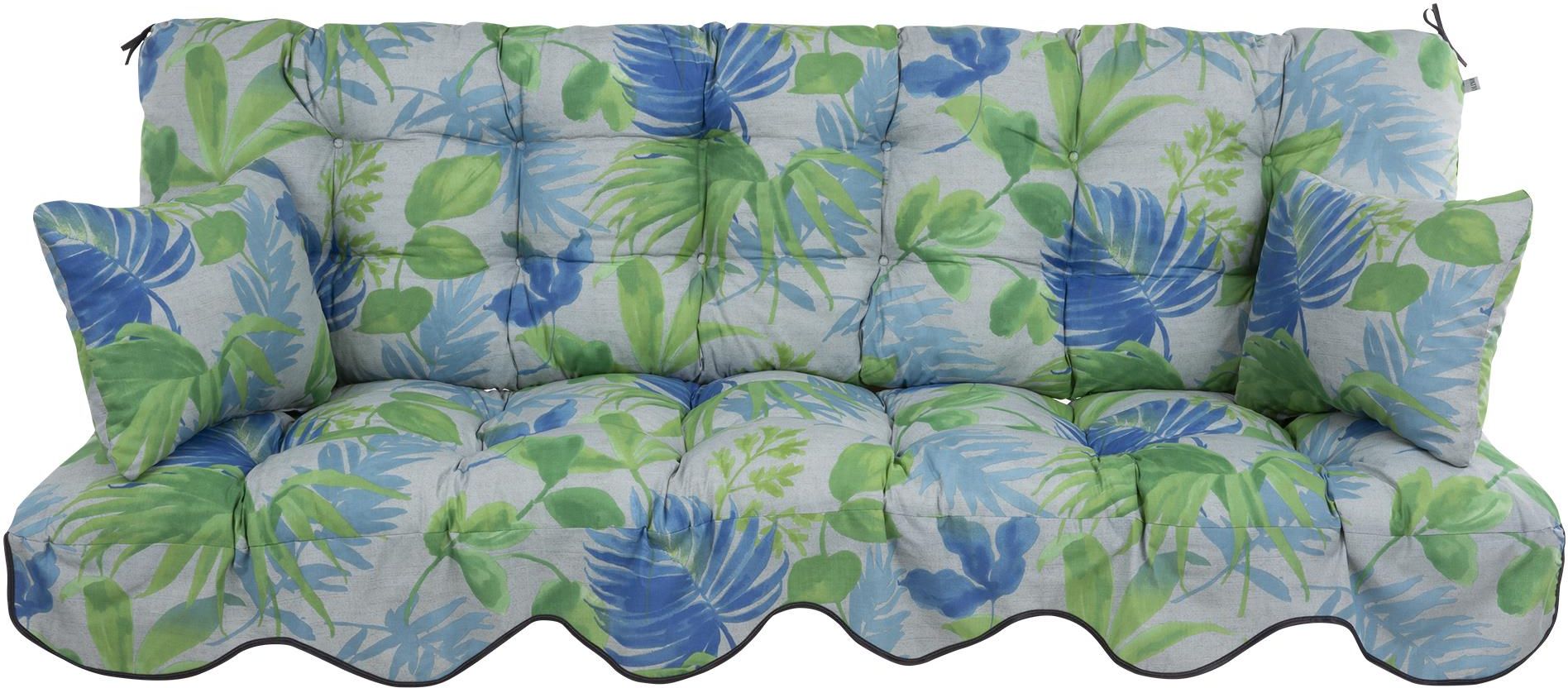 Poduszki na huśtawkę ogrodową w liście Komplet poduszek na huśtawkę ogrodową wykonana z wysokiej jakości polibawełny to idealne połączenie stylu i komfortu. Nowoczesny wzór w liście w odcieniach zieleni i niebieskiego wprowadzi do Twojego ogrodu atmosferę relaksu i bliskości z naturą. Materiał jest trwały, a jednocześnie miękki w dotyku, dzięki czemu każda chwila spędzona na świeżym powietrzu staje się czystą przyjemnością. Wypełnienie z gąbki typu flocke zapewnia doskonałe podparcie, a troczki pozwalają na łatwe i stabilne mocowanie poduszki. Elegancki wolant z lamówką podkreśla stylowy charakter produktu. Wysokiej jakości materiał: trwała i miękka polibawełna Komfortowe wypełnienie: gąbka typu flocke zapewniająca optymalne podparcie Stylowe pikowania: dodają elegancji i zwiększają trwałość poduszki Stabilne mocowanie: praktyczne troczki utrzymujące poduszkę na miejscu Eleganckie