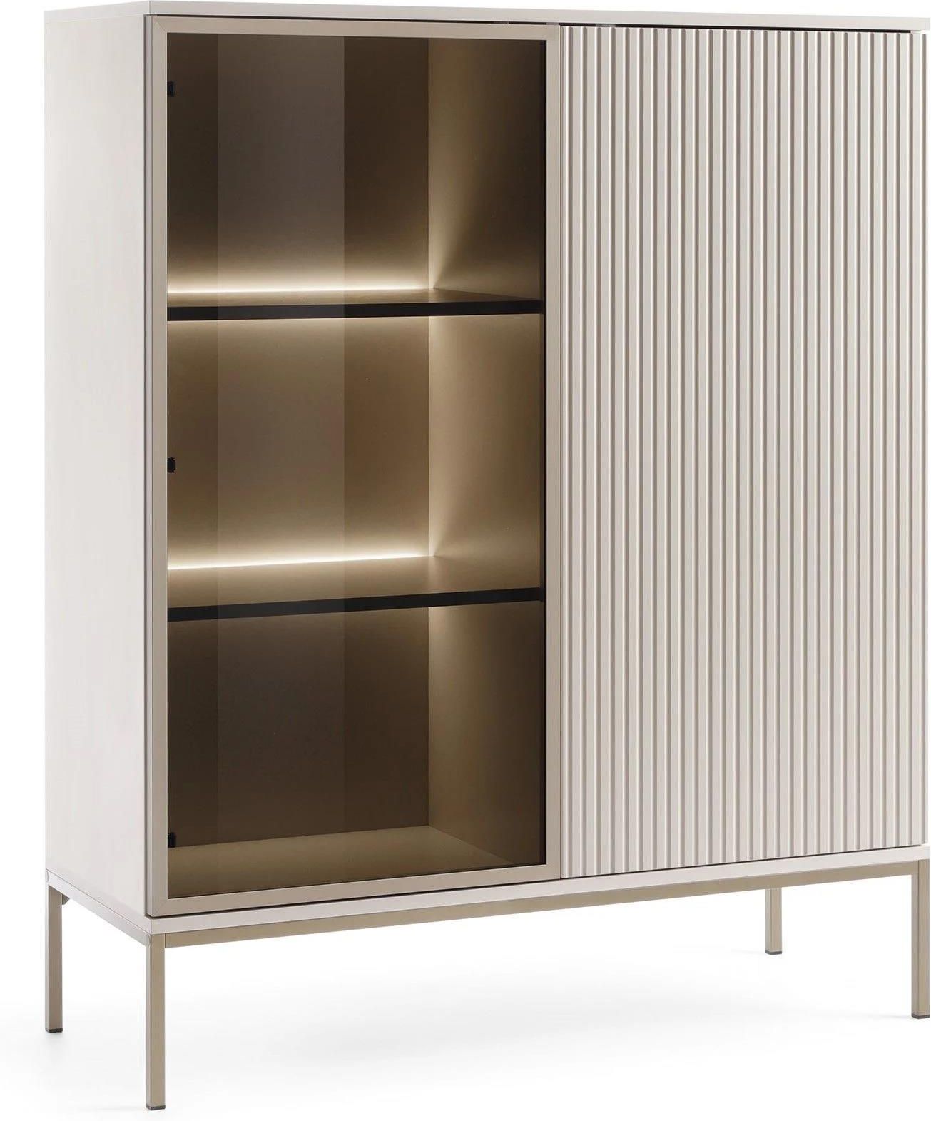 Witryna dwudrzwiowa WT104 marki Piaski z oświetleniem LED w kolorze kaszmirowym to elegancki i funkcjonalny mebel, idealny do nowoczesnych wnętrz.Korpus witryny wykonany jest z wysokiej jakości płyty laminowanej o grubości 16 mm, co zapewnia jej trwałość i odporność na uszkodzenia mechaniczne oraz …