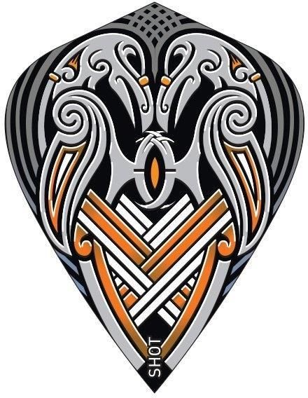 Piórko dart Shot Viking Raven Black KiteOto legenda o Kruku Wikingów. Dwa Kruki o imieniu Huginn i Munnin siedzą na ramionach nordyckiego boga Odyna. Wysyła je o świcie aby poleciały w świat; wracają i opowiadają mu wszystko, cousłyszały i zobaczyły. Piórko zostało ręcznie narysowane przez zespół projektowy Shot. Wikingowie używali symbolu Kruka, aby siać wśród swoich wrogów strach w walce. Piórko w kształcie kite (deltoidu, latawca)jest przeznaczone dla graczy, którzypragnąmaksymalnej kontroli nad lotką i szukają okazji do grupowania. Kształt - kiteMateriał - Polimer o grubości100 mikronów [[en]]{{Shot Viking Raven BlackKite flights}}