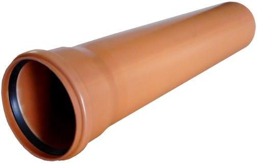 długość: 1 m średnica: 110 mm wytrzymałość: SN8 grubość ścianki: 3,2 mm Rury o gładkich powierzchniach wewnętrznych i zewnętrznych, których ścianki zewnętrzne i wewnętrzne połączone są wewnętrzną pośrednią termoplastyczną warstwą spienioną. Rury do kanalizacji zewnętrznej mają barwę pomarańczowo-brązową (RAL 8023), jednolitą pod względem odcieni i intensywności. Wszystkie rodzaje rur i kształtek kanalizacyjnych łączone są pomiędzy sobą oraz z rurami gładkościennymi poprzez kielichy z rowkiem, w którym umieszczona jest pierścieniowa uszczelka z elastomeru. Rury kanalizacyjne z PVC-U przeznaczone są do stosowania: - w podziemnym bezciśnieniowym odwadnianiu i kanalizacji ułożonych w ziemi w pasie drogowym (pod jezdnią lub poza jezdnią) lub innych terenach wykorzystywanych do celów inżynierii komunikacyjnej, - do wykonywania osłon dla innych przewodów oraz przepustów przez nasypy drogowe, - odwodnień konstrukcji mostowych budowanych na trasach drogowych Kielich standardowy - z uszczelką elastomerową SBR typu BL - z uszczelką olejoodporną z elastomeru NBR typu BL