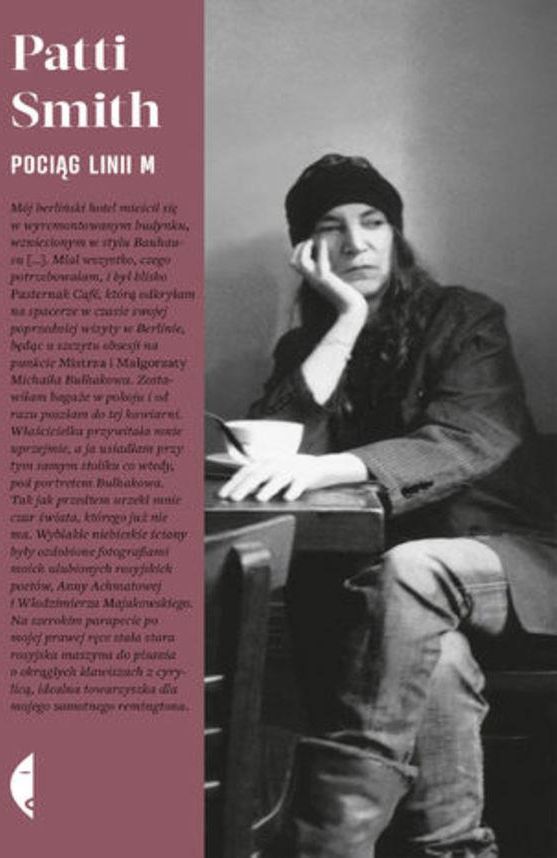 Nowy Jork, Greenwich Village, pierwsza stacja pociągu linii M. Przy stoliku w kawiarni siedzi kobieta. Zawsze zamawia czarną kawę i razowe grzanki z oliwą. To Patti Smith, piosenkarka, poetka, jedna z najważniejszych artystek w historii rocka. Nałogowo opisuje świat wokół: notuje wrażenia z podróży, wspomina bliskich, przytacza anegdoty i wprowadza w świat ulubionych książek. Znana z żywiołowych koncertów, fascynuje pasją życia, otwartością i wrażliwością, nieobce są jej też melancholia i lęk. Jej Pociąg linii M kursuje wahadłowo pomiędzy przeszłością a teraźniejszością, między jawą a snem, między fikcją a prawdą, a z kawiarnianych zapisków Patti Smith wyłania się zaskakująco osobisty i spójny portret ikony amerykańskiej popkultury. Nie ma jednej mapy podróży z Patti Smith. Są prawdziwe miejsca, które z nią odwiedzamy, jak choćby mała kawiarnia w Greenwich Village, gdzie bohaterka pija swoją codzienną czarną kawę, albo dom Fridy Kahlo w Meksyku. Ale są też miejsca, do których trafiamy trochę skrępowani, zawstydzeni, ale jednocześnie z wdzięcznością. To cały świat uczuć, wspomnień, snów, marzeń kalejdoskopowo przefiltrowanych przez wrażliwość artystki. Oba światy ten rzeczywisty, dookreślony i ten bez granic, bo zaklęty w sercu, przenikają się i splatają tak silnie, że czasem nie sposób ich rozróżnić. Tym bardziej że mistrzyni słowa płynnie, pięknie przechodzi od szczegółu do uniwersalnych obserwacji raz patrzy przez mikroskop, by za chwilę spojrzeć śmiało przez potężny teleskop. Pociąg linii M to nasz bilet do jej świata. Łukasz Kamiński Przed lekturą naiwnie wierzyłam, że Patti Smith zna odpowiedź na każde pytanie. Ale Smith, jak każdy z nas, nierzadko bywa zagubiona, czasem naburmuszona, często zafascynowana ludźmi i przedmiotami, które ją otaczają. Naprawdę warto zatopić się w tej książce z filiżanką dobrej kawy w dłoni. Paula Mejia, Newsweek Pociąg linii M to książka o próbie odnalezienia swojego miejsca w życiu. Patti Smith w mistrzowski sposób opowiada o poezji, marzeniach, sztuce i literaturze oraz zabiera czytelnika w podróż przez dekady, kontynenty i zakamarki duszy, będąc przy tym bystrą i pełną uroku przewodniczką. Eugenia Williamson, The Boston Globe Nieważne, czy Smith pisze o swoich marzeniach, czy o zagubionym płaszczu za każdym razem potrafi sprawnie łączyć wątki dotyczące pamięci, bólu i absurdu ludzkiego doświadczenia. Pociąg linii M leniwie przesuwa się z przeszłości w teraźniejszość, ze snu do jawy. Książka Smith urzeczywistnia wieczną tęsknotę oraz celnie ukazuje, w jaki sposób człowiek próbuje sobie radzić ze stratą. Heather Scott Partington, Las Vegas Weekly U progu kariery Smith pisała wiersze i artykuły do rockandrollowych czasopism. Nikogo więc nie zdziwiły Poniedziałkowe dzieci, opisujące jej drogę do sławy. Pociąg linii M jest zupełnie inny. To impresjonistyczna opowieść o marzeniach, niepowodzeniach, objawieniach i refleksjach na temat życia i sztuki. Patti to prawdziwy głos pokolenia, zabiera nas w intelektualną podróż z kubkiem świeżo zaparzonej kawy w dłoni. Will Hermes, Rolling Stone Poetka i szamanka, amerykańska ikona popkultury i rockowe dziecko-włóczęga. Taka jest Patti, która tytułowym pociągiem linii M dojeżdża w najgłębsze fragmenty swojej duszy. To mozaika historii o stracie, pamięci, kawie, literaturze i nadzwyczajnej wyobraźni. John Heilpern, Vanity Fair Przepiękna, kalejdoskopowa ballada o stracie i nieubłaganie pędzącym czasie []. Podczas gdy Poniedziałkowe dzieci opowiadały o Nowym Jorku lat 60. i 70., Pociąg linii M krąży tam i z powrotem między tym, co było, a tym, co jest. Duchy przeszłości przychodzą we wspomnieniach o ukochanym mężu, bracie i artystach, którzy inspirowali Smith. Szeroko rozumiana strata jest centralnym punktem jej opowieści []. Wymowna, głęboko poruszająca książka, która na długo zostaje w pamięci. Michiko Kakutani, The New York Times Pociąg linii M przejeżdża blisko celu, do którego dążył Marcel Proust głębokie spojrzenie w ludzki umysł i serce. Po lekturze uświadomisz sobie, że nic jest wszystkim, a w życiu liczy się przede wszystkim miłość. Joan Juliet Buck, Harpers Bazaar Spis treści: Seria Strona tytułowa Strona redakcyjna Dedykacja Café Ino Zmieniając kanały Krakersy w kształcie zwierząt Pchła wysysa krew Góra fasoli Zegar bez wskazówek Studnia Koło fortuny Jak zgubiłam Kronikę ptaka nakręcacza Sandy Vecchia Zimarra Mu Burzowe demony powietrza Sen o Alfredzie Wegenerze Droga do Al-Araiszu Znany teren Jak Linden zabija to, co kocha Dolina Zaginionych Południowa godzina Spis fotografii Przypisy Kolofon