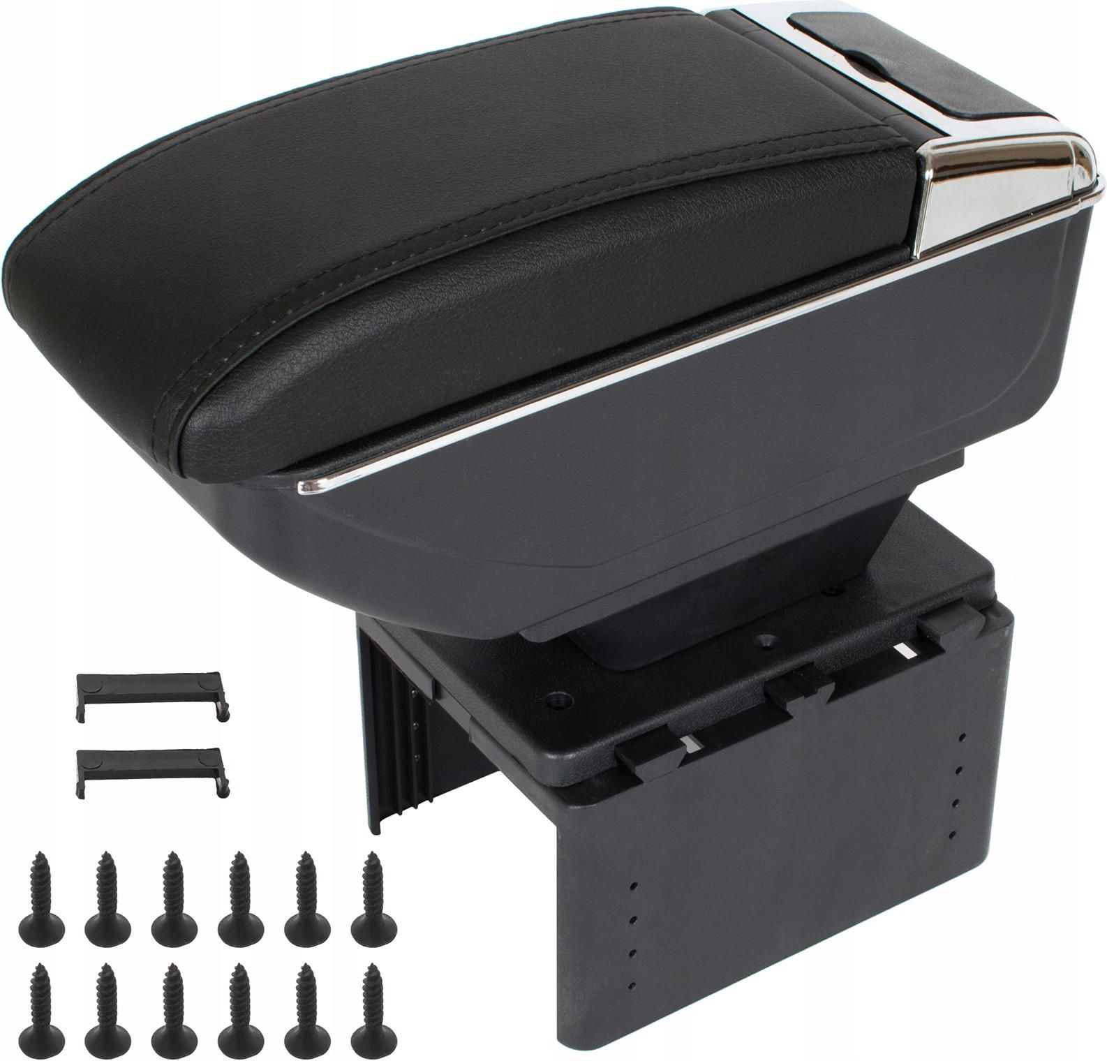 Przedmiot:UNIWERSALNY PODŁOKIETNIK SAMOCHODOWY + ZESTAW MONTAŻOWY Kolor: czarny Materiał: ekoskóra + tworzywo sztuczne ABS Samochód: wszystkie rodzaje aut Producent: zamiennik Uwaga! posiada miękkie obicie pod łokieć posiada dodatkowy (mniejszy) schowek bezpośrednio pod klapką (np. na monety, żetony) posiada regulację przesuwania klapki przód - tył spód podłokietnika pokryty miękkim materiałem w kolorze czarnym w tylnej części uchwyt na kubek popielniczka (pod uchwytem na kubek) z wyciąganym wkładem w komplecie - 2 x zabezpieczenie przed wysunięciem podłokietnika oraz zestaw wkrętów Komplet składa się z 4 części 1 - BAZA - część dolna, którą przykręcamy do tunelu środkowego Wymiary - 18,5 cm x 12,3 cm (długość x wysokość) Zakres regulacji stopnia rozszerzenia - od 10 cm do 19 cm 2 - PODWYŻSZENIE - mocujemy wg własnych preferencji Wymiary - 14,9 cm x 9,3 cm x 4,5 cm (długość x szerokość x wysokość) 3 - PŁYTKA PROWADZĄCA 4 - KLAPKA PODŁOKIETNIKA ZE SCHOWKIEM