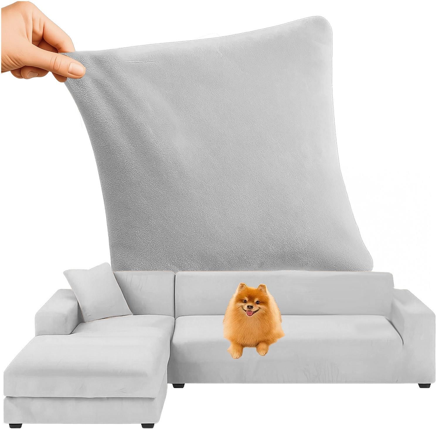 Pokrowiec na Narożnik Kanapę Leżankę Jasno Szary Welur Elastyczny 145-185cm RUHHY 26035 Katowice
