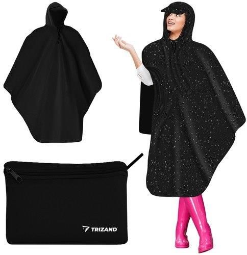 Ponczo przeciwdeszczowe, peleryna, płaszcz poncho na rower z kapturem czarne TRIZAND! wodoodporne – ponczo przeciwdeszczowe zostało wykonane z wysokiej jakości wodoodpornego poliestru, który gwarantuje 100% ochrony przed deszczem, nawet przy intensywnych opadach odzież i ekwipunek pod spodem …