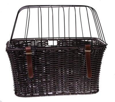Kosz rowerowy PROFEX do przewozu zwierząt z osłoną, który łączy funkcjonalność, bezpieczeństwo i elegancki wygląd. Kosz wykonany jest z wysokiej jakości, plecionej wikliny w ciemnym odcieniu, co nadaje mu klasyczny i stylowy charakter. Dzięki solidnej metalowej osłonie zwierzę pozostaje bezpieczne podczas jazdy, a jednocześnie ma zapewnioną pełną widoczność i odpowiednią cyrkulację powietrza.