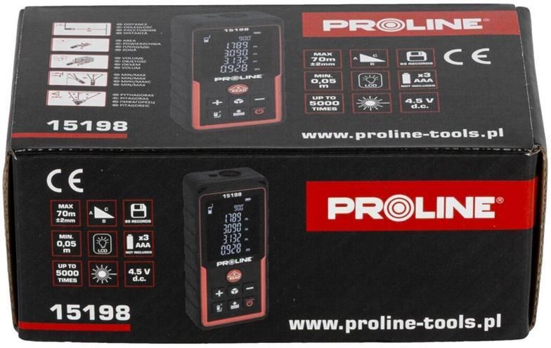 Dalmierz laserowy 70M cyfrowy miernik odległości profesjonalny Proline 15198 Dalmierz laserowy Proline 15198 to profesjonalne, niezawodne i dokładne urządzenie, które zrewolucjonizuje Twoją pracę, zapewniając precyzyjne wyniki w mgnieniu oka. Idealny dla budowlańców, architektów, majsterkowiczów i wszystkich, którzy cenią sobie szybkość i dokładność. Certyfikat CE Certyfikat IP 54 Klasa lasera II Typ lasera 620-690 nm,<1 mW Czas pomiaru 0.5 sek Auto wyłączanie 5 min Ekran LCD Pamięć 99 pomiarów Możliwość wyboru 2 punktów początkowych pomiaru: przód, tył dalmierza Dostępne rodzaje pomiarów: pomiar pojedyńczy, pomiar ciągły, twierdzenie Pitagorasa - bezpośrednie i pośrednie, obliczanie pola powierzchni i objętości Możliwe dodawanie i odejmowanie pomiarów Żywotność baterii (typ AAA, 3 x 1.5 V) do 5000 pomiarów Wymiary i waga: 120 mm x 50 mm x 25 mm, 92g±5g Zakres temperatur: przechowywanie od -20°C do +65°C, praca od 0°C do +40°C Pakowane w pudełko z instrukcją Dalmierz laserowy Proline 15198 gwarantuje błyskawiczne pomiary w zaledwie 0,5 sekundy. Z dużym zakresem do 70 metrów i klasą lasera II (620-690 nm, <1 mW), mamy pewność, że każdy pomiar jest niezwykle precyzyjny. Dzięki certyfikatom CE i IP54, urządzenie jest odporne na pył i zachlapania, co czyni je idealnym do pracy w trudnych warunkach. Dalmierz laserowy Proline 15198 oferuje szeroki wachlarz funkcji, które ułatwią Ci codzienne zadania Różnorodne tryby pomiaru: Pomiar pojedynczy, pomiar ciągły, a także zaawansowane funkcje oparte na twierdzeniu Pitagorasa (bezpośrednie i pośrednie), umożliwiające obliczanie trudno dostępnych odległości. Obliczanie pola powierzchni i objętości: Szybko i łatwo zmierzysz metraż pomieszczeń czy objętość przestrzeni. Dodawanie i odejmowanie pomiarów: Proste operacje arytmetyczne bezpośrednio na urządzeniu. Pamięć 99 pomiarów: Nie musisz już zapisywać wyników – dalmierz zapamięta je za Ciebie. Dwa punkty początkowe pomiaru: Możliwość wyboru pomiaru od przodu lub od tyłu dalmierza zapewnia elastyczność w różnych sytuacjach. Kompaktowe wymiary (120 mm x 50 mm x 25 mm) i niska waga (92g ± 5g) sprawiają, że Dalmierz laserowy Proline 15198 idealnie leży w dłoni i jest łatwy do przenoszenia. Duży, czytelny ekran LCD zapewnia komfort odczytu wyników nawet w słabych warunkach oświetleniowych. Dalmierz zasilany jest trzema bateriami AAA, które zapewniają żywotność do 5000 pomiarów, a funkcja auto wyłączania po 5 minutach bezczynności dodatkowo oszczędza energię. Urządzenie może pracować w temperaturach od 0°C do +40°C, a przechowywanie od -20°C do +65°C. Dalmierz laserowy Proline 15198 dostarczany jest w solidnym pudełku wraz z instrukcją obsługi, dzięki czemu jest gotowy do użycia od razu po wyjęciu z opakowania.