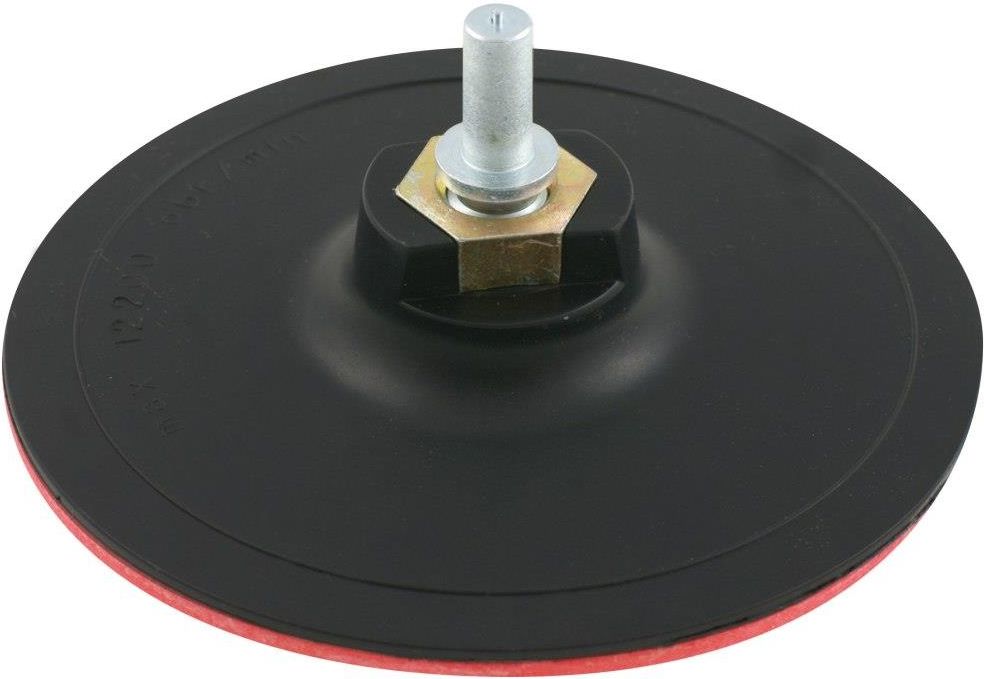 27037 Dysk gumowy 125mm z gwintem M14 z rzepem i adapterem do wiertarki, Proline Zastosowanie: jako adapter do wiertarki i szlifierki kątowej na krążki ścierne Ø 125 mm samoprzylepne.