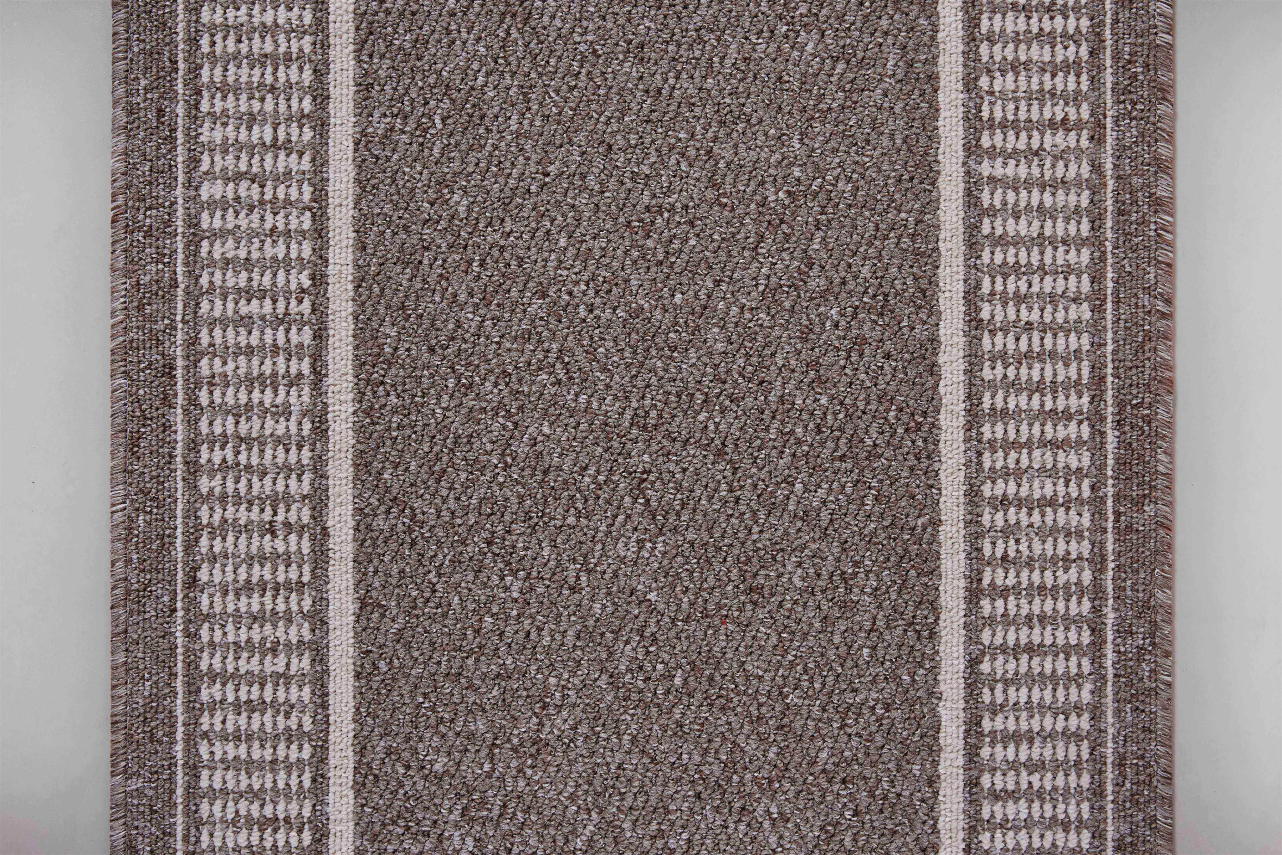 CHODNIK PROMENADE 8714 BRAUN to antypoślizgowy chodnik na schodu oraz do przedpokoju o szerokości wynoszącej 100 cm. Prezentowany chodnik beżowy z elementami brązu pokrywa geometryczna ramka. Chodnik podgumowany to model tkany maszynowo z włókien syntetycznego polipropylenu, który wyróżnia się wyjątkowo trwałą i wygodną w codziennym użytkowaniu powierzchnią. Produkt odporny na uszkodzenia mechaniczne – takie jak przebarwienia, przetarcia, udeptywanie oraz zaplamienia – zachowuje doskonały wygląd także przy podwyższonym stopniu eksploatacji. Chodnik beżowy objęty jest 2-letnią gwarancją.
