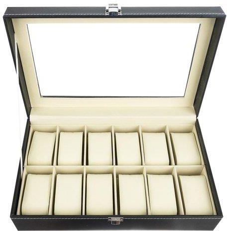KASETKA ORGANIZER NA 12 ZEGARKÓW LUB BIŻUTERIĘ UNIWERSALNY – świetnie nadaje się nie tylko do przechowywania zegarków, ale również bransolet i innej biżuterii, dlatego doskonale sprawdzi się jako prezent zarówno dla kobiety jak i mężczyzny. Jest praktyczny i świetnie skomponuje się z każdym wnętrzem, a z całą pewnością będzie rewelacyjny dla każdego. ZAMYKANY NA MAGNETYCZNY ZATRZASK – metalowy zatrzask sprawia, że organizer nie otworzy się przypadkiem, a jego zawartość nie wypadnie podczas przenoszenia. Twoja biżuteria będzie w nim bezpieczna. ESTETYCZNE I ELEGANCKIE –etuiwykonane z dbałością o szczegóły, pięknie się prezentuje i wspaniale eksponuje swoją zawartość. Produkt wykonany z czarnej ekoskóry z białymi przeszyciami oraz jasnym, doskonale kontrastującym wnętrzem. Wieczko etui jest przezroczyste, dzięki czemu pudełko na zegarki możemy wykorzystać nie tylko do przechowywania i zachowania porządku, ale również do eleganckiego eksponowania zawartości. BEZPIECZNE W ŚRODKU – wnętrze organizera wyścielone jest miękkim materiałem, dzięki poduszkom przechowywane akcesoria są chronione przez zarysowaniami, każda z nich jest wyjmowana, dzięki temu możemy przechowywać tam również inną biżuterię, np. bransoletki, wisiorki, pierścionki, czy też kolczyki. Przegródki są oddzielone od siebie wyższymi ściankami, co chroni przechowywane akcesoria przed niepożądanym stykaniem, które mogłoby skutkować zniszczeniem. SPECYFIKACJA - kolor: czarny; materiał: ekoskóra + welur; ilość przegródek: 12; wymiary zamkniętego organizera (szer/dł/wys): 33,3/20,5/9 cm; wymiary 1 przegródki (dł/szer): 9,3/5 cm; waga: 1,13 kg; waga w opakowaniu: 1,29 kg SPECYFIKACJA: kolor: czarny materiał: ekoskóra + welur ilość przegródek: 12 wymiary zamkniętego organizera (szer/dł/wys): 33, 3/20, 5/9 cm wymiary 1 przegródki (dł/szer): 9,3 / 5 cm waga: 1,13 kg waga w opakowaniu: 1,29 kg