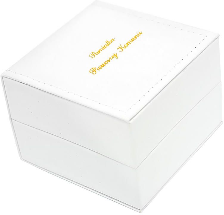PUDEŁKO ETUI NA ZEGAREK Cechy produktu Wymiary pudełka pozwalają na umieszczenie zegarka chłopięcego jak i dziewczęcego Pudełeczko sprawdzi się również na przechowywanie w niej biżuterii np. łańcuszek czy też bransoletka. Wykonanie: Pudełko wykonane z wysokiej jakości ekoskóry, w środku znajduje się biała poduszeczka z ekoskóry. Kolorystyka: pudełko białe, poduszeczka kolor biały. Wymiary: szerokość: 10, cm x 10,8 cm wysokość: 8,5 cm.