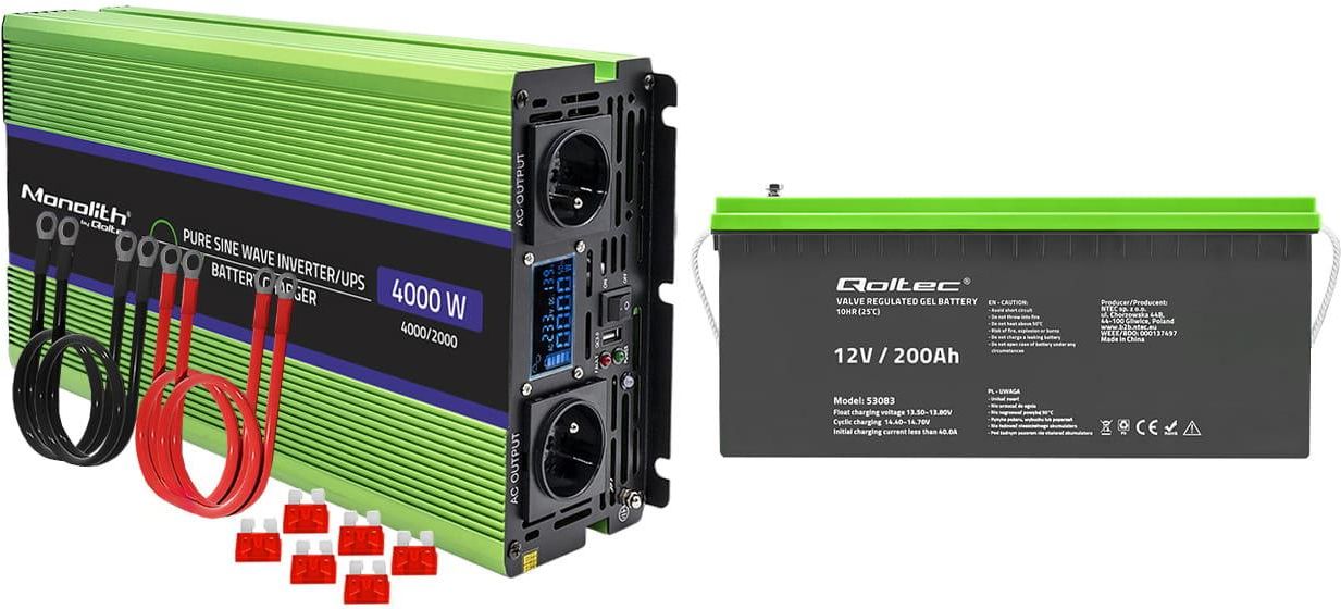 Qoltec Monolith Ups 12V/230V 2000W/4000W + Akumulator Żelowy Gel Professional Longlife 12V 200Ah Katowice