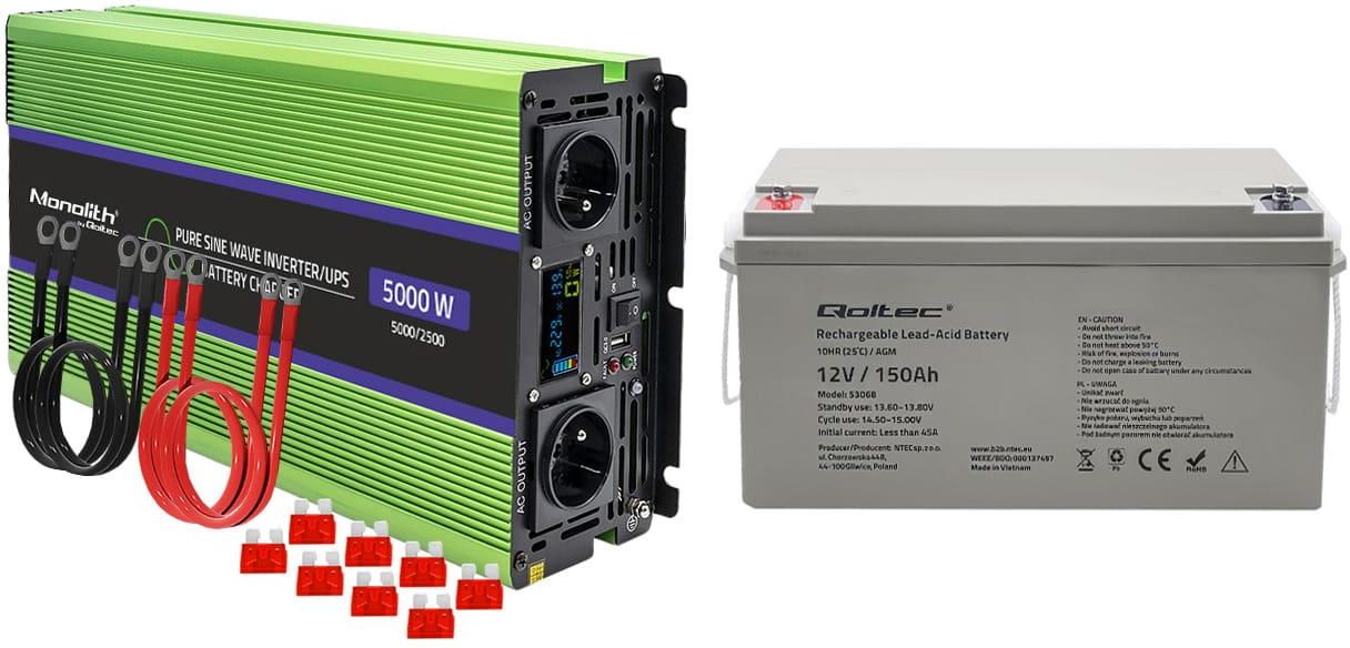 Qoltec Monolith Ups 12V/230V 2500/5000W + Akumulator Agm Longlife 12V 150Ah Katowice