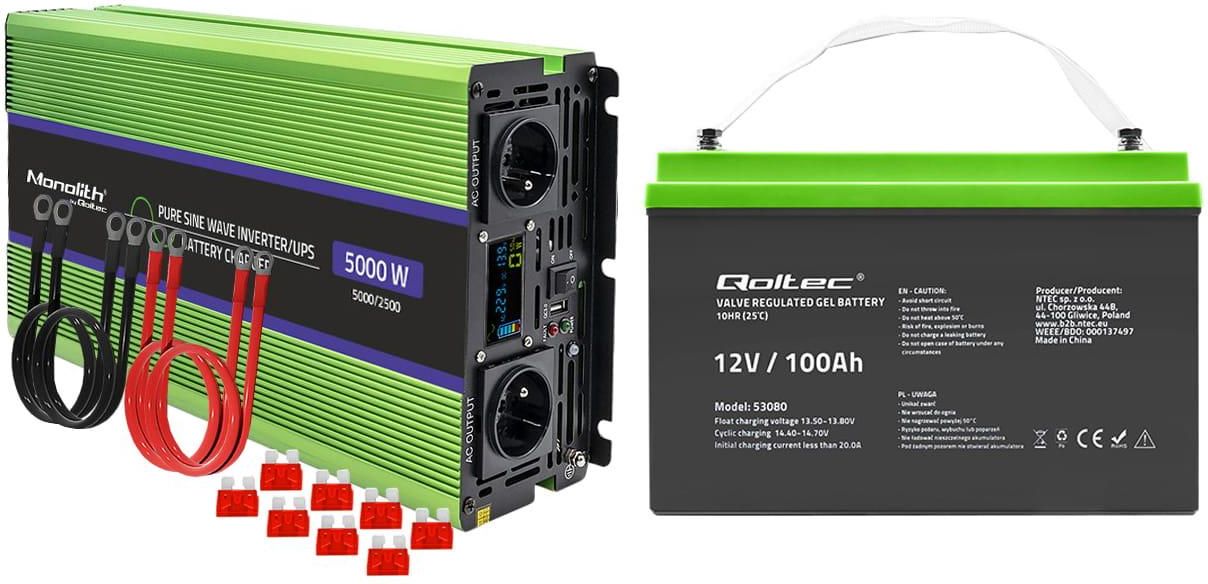 Qoltec Monolith Ups 12V/230V 2500/5000W + Akumulator Żelowy Gel Professional Longlife 12V 100Ah Katowice