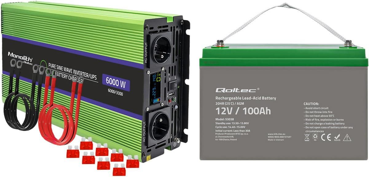 Qoltec Monolith Ups 12V/230V 3000/6000W + Akumulator Agm Longlife 12V 100Ah Katowice