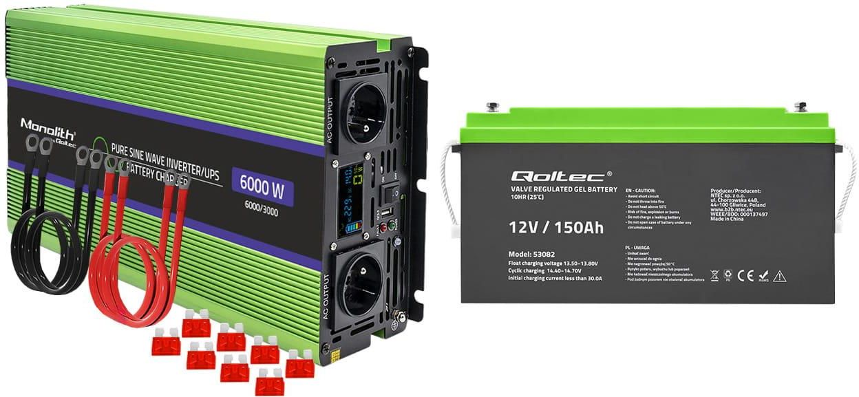 Qoltec Monolith Ups 12V/230V 3000/6000W + Akumulator Żelowy Gel Professional Longlife 12V 150Ah Katowice
