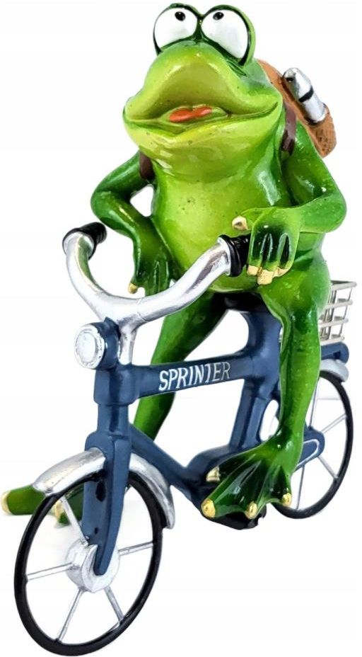Żaba na rowerze – mistrzyni dwóch kółek! Oto żaba, która nie boi się wyzwań! Profesjonalna kolarka w świecie płazów, gotowa na Tour de Staw! Siedzi dumnie na swoim błękitnym rumaku na dwóch kołach, z brązowym plecakiem pewnie osadzonym na plecach – bo wiadomo, każdy prawdziwy cyklista musi mieć ze sobą srebrny termos z napojem izotonicznym (czytaj: ciepłą herbatką). Jedną łapką opiera się o ziemię, drugą gotowa jest do ruszenia w trasę, a na bagażniku ma stylowy srebrny koszyczek – w sam raz na przekąski lub… niespodziewanego pasażera. Wykonana z trwałego tworzywa sztucznego żabia rowerzystka ma 18 cm wzrostu, co czyni ją idealnym towarzyszem na półce, biurku czy parapecie. Szukasz dekoracji z charakterem? A może inspiracji do codziennych treningów? Ta żaba to dowód na to, że styl i sport idą w parze – nawet w świecie płazów! 🚴‍♂️🐸 Zapakowana w pudełko. Wzór: żaba na rowerze Produkt 1 x figurka 1 x pudełko Wymiary wysokość 18 cm szerokość 12 cm długość 15,5 cm wymiary pudełka 16,5 cm x 20,5 cm x h23 cm Materiał tworzywo sztuczne Użytkowanie wystrój wnętrza