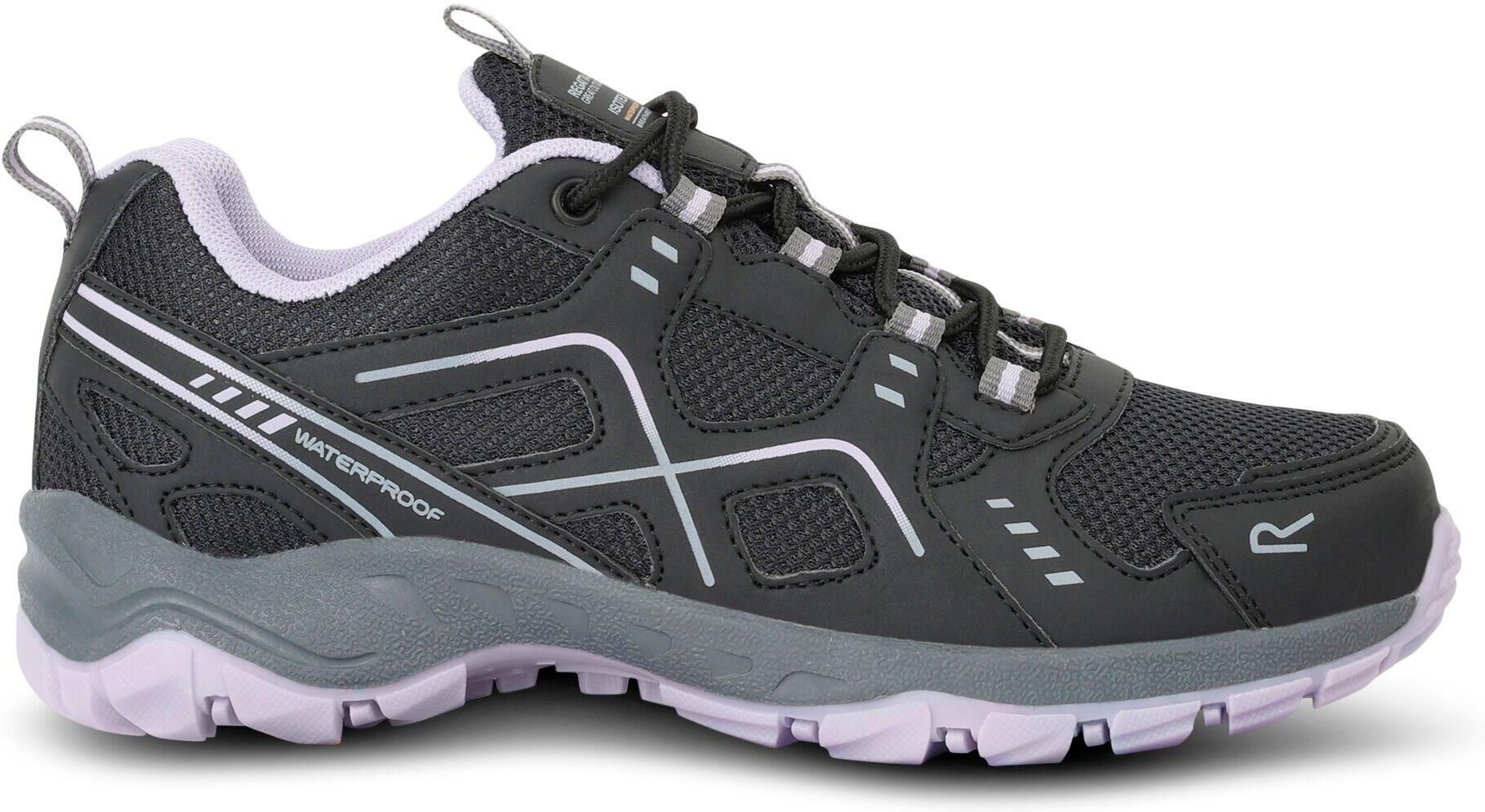Damskie buty trekkingowe firmy REGATTA Model: LADY VENDEAVOUR kod produktu: RWF785 kolor: Y13 ASH/LILCFRST Wodoodporne i wygodne – trekkingowe buty damskie Lady Vendeavour są idealne na przygodę na świeżym powietrzu. Dzięki oddychającemu materiałowi stopy pozostają świeże podczas długich wędrówek. Wycinana wkładka EVA zapewnią komfort przez cały dzień. Damskie buty do chodzenia z uszczelnionymi szwami z tkaniny Isotex ochronią przed deszczem i zachlapaniem. Buty wykończone kątownikami dla lepszej przyczepności. Sprawdzą się zarówno w górskim terenie, na leśnych ścieżkach jak i w codziennym użytkowaniu. PARAMETRY TECHNICZNE Cholewka: materiał syntetyczny i techniczna siateczka wyprofilowana, wygodna wkładka EVA uszczelnione szwy z oddychającą wewnętrzną wyściółką membranową podeszwa zewnętrzna TPR wzmacniane noski język zszyty z cholewką Isotex: Wodoodporna, oddychająca i wiatroodporna technologia membranowa Nowa podeszwa zewnętrzna TPR z samooczyszczającymi się i ustawionymi pod kątem występami do napędzania, hamowania i zmniejszania zatykania