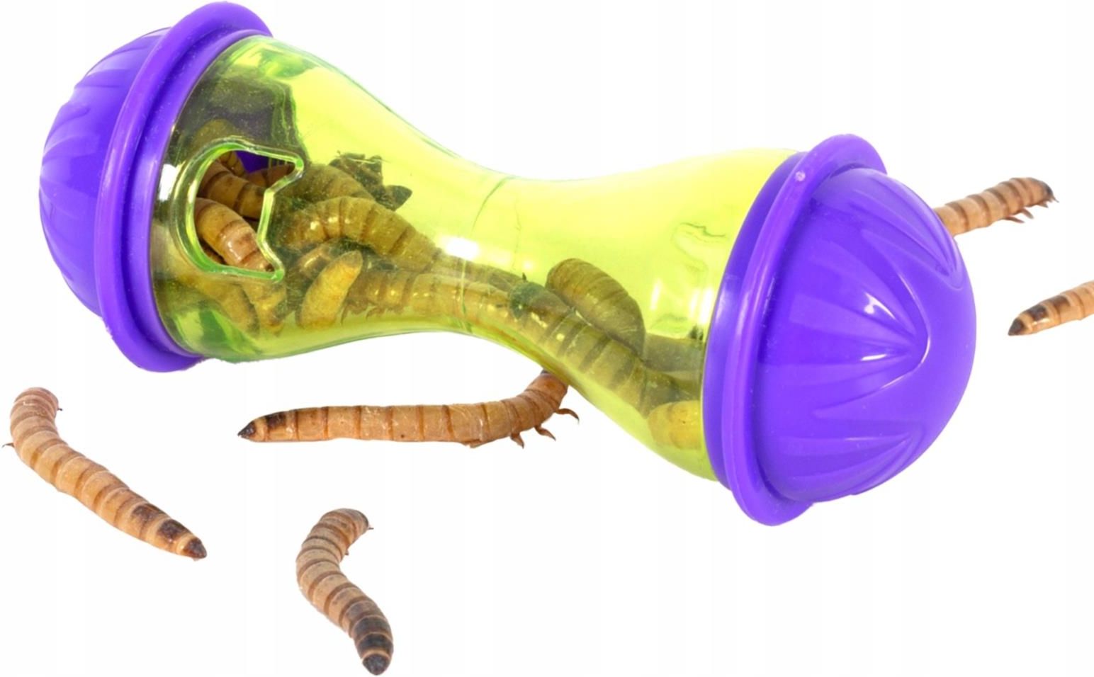 Repti-Zoo Enrichment Treat Ball - trening polowania 2 sztuki Wyjątkowy karmnik na żywe owady dla Agamy Brodatej i innych większych jaszczurek mięsożernych.Doskonały trening dla umysłu oraz ciała. Szczególnie polecany Agamom Brodatym, gdyż mają wysoką tendencję do tycia. trening ciała i umysłu dla grubszych osobników doskonała zabawa i polowanie dwie sztuki w zestawie Odkryj nasze innowacyjne zabawki dla agam brodatych, zaprojektowane, aby wzbudzić ich naturalne instynkty i dostarczyć godzin dynamicznej zabawy! W zestawie otrzymujesz dwie sztuki - idealne do urozmaicenia codziennego treningu Twojego zwierzaka. Każda zabawka jest jednocześnie inteligentnym dozownikiem na robaki.Twój zwierzak musi uderzyć w zabawkę, aby wydobyć smakołyk. Ten proces nie tylko pobudza naturalny instynkt drapieżnika, ale także stymuluje ciało i umysł, rozwijając koordynację i strategiczne myślenie. Szczególnie polecany jest dla agam brodatych z nadwagą. Aktywizuje do ruchu, promuje zdrowe odchudzanie i dostarcza bezcennych chwil radości z polowania. Stosowanie: Odkręć wieczko. Wsyp robaki mogą być suszone larwy, świerszcze itp lub żywe. Zakręć i włóż do terrarium. Zaleca się korzystać z dwóch sztuk jednocześnie, zwłaszcza gdy podajesz żywy pokarm. Wymiary pojedynczej sztuki: 45x45x110mm Do każdego zamówienia zestaw poradników gratis! W trosce o środowisko poradniki wysyłane są drogą elektroniczną.