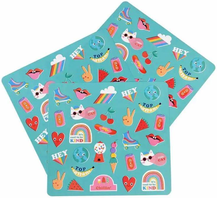 Aż 3 arkusze kolorowych naklejek dla dzieci z ulubionymi motywami. Dzięki nim okładka zeszytu przestanie być nudna i każdy będzie wiedział, że należy do fana stylu lat siedemdziesiątych. Jak bawić się naklejkami? Twórz autorskie kompozycje na czystej kartce papieru Narysuj obrazkowy pamiętnik i …