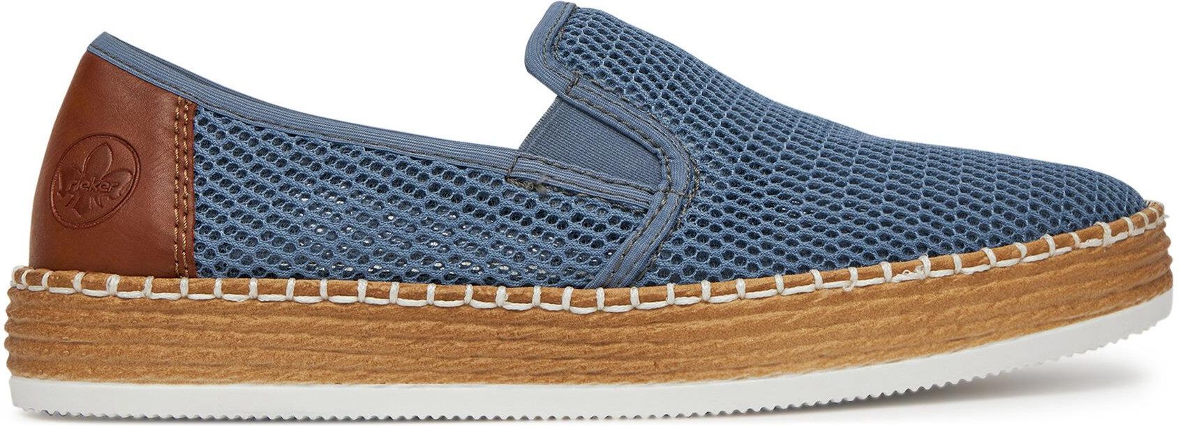 Espadryle marki Rieker w ciemnoniebieskim kolorze to doskonały wybór dla każdej kobiety ceniącej komfort i styl. Wykonane z wysokiej jakości włókienniczego materiału, zapewniają trwałość i przewiewność, idealną na cieplejsze dni. Dzięki sznurowaniu, możesz je perfekcyjnie dopasować do swojej stopy, co dodatkowo podnosi wygodę użytkowania. Technologia Rieker Antistress gwarantuje maksymalny komfort podczas noszenia, redukując nacisk na stopy i zapewniając miękkość każdego kroku. Te espadryle to świetny wybór na casualowe stylizacje, które łączą modny wygląd z niezrównaną wygodą. Idealne na spacer czy spotkanie z przyjaciółmi! Od ponad stu lat marka Rieker oferuje niezwykle komfortowe i trwałe obuwie, które powstaje z myślą o zdrowiu stóp. Dzięki wieloletniemu doświadczeniu w produkcji obuwia, ta niemiecka marka doskonale potrafi łączyć wygodę ze stylem, dlatego w ofercie znajdziesz buty w modnych, oryginalnych fasonach, które każdemu przypadną do gustu. Buty Rieker tworzone są z materiałów wysokiej jakości, przez co odznaczają się wyjątkową elastycznością i trwałością, ale też lekkością. Ponadto w obuwiu stosuje się szerszą formę zapewniającą odpowiednią stabilizację stopy, specjalne podeszwy absorbujące wstrząsy oraz odciążające stawy i kręgosłup, a także wyjmowane wkładki z pianki Memory Foam, która idealnie dopasowuje się do kształtu stóp. To doskonałe produkty dla tych, którzy ponad wszystko cenią sobie komfort. Przekonaj się!