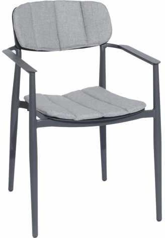 Alexander Rose - luksusowe meble do Twojego ogrodu lub patioWysokiej jakości luksusowe meble ogrodowe są podstawowymi produktami oferowanymi przez markę Alexander Rose, której korzenie sięgają 1994 roku oraz afrykańskiej Ghany - tam właśnie powstała pierwsza fabryka, której owoce pracy przeznaczone były na rynek brytyjski. Dziś produkty opatrzone tym brandem służą swoim różnorodnym nabywcom - centrom ogrodnicznym i spa, hotelom, restauracjom, klubom oraz domom opieki, a także indywidualnym odbiorcom ceniącym najwyższą jakość wykonania oraz estetykę łączącą nowoczesność z magią ręcznego rzemiosła. Wizją marki Alexander Rose pozostaje chęć bycia docenionym w Europie oraz na świecie za jakość oraz design mebli ogrodowych. Ponadto zarządzający brandem za cel swojej działalności postawili sobie wyróżnianie się doskonałą obsługą swoich klientów i działanie na rzecz ich maksymalnego zadowolenia - stąd produkty przez nich oferowane najczęściej posiadają wydłużoną gwarancję użyteczności - nawet do 10 lat. Warto również zwrócić uwagę, że surowiec do produkcji drewnianych mebli ogrodowych pozyskiwany jest z odpowiednio zarządzanych lasów tak, by zminimalizować wpływ jego pozyskania na środowisko. Cały proces produkcji został unowocześniony w celu zmniejszenia śladu węglowego, a ilość wykorzystywanych niebezpiecznych dla środowiska materiałów została maksymalnie ograniczona. Długi możliwy czas użytkowania oferowanych produktów znacząco również rzutuje na ochronę środowiska naturalnego. Kolekcja RIMINIKolekcja RIMINI to nowoczesny design, który wpasowuje się doskonale do klasycznych przestrzeni zewnętrznych nadając świeżego wyglądu. Ciemna kolorystyka świetnie współgra z jaśniejszymi, bądź jeszcze ciemniejszymi poduchami. Zaokrąglone kanty stołów i zwężane nogi foteli to idealnie nowoczesna odsłona Twojego ogrodu. Zalety mebla poduszki olefinowe odporne na warunki atmosferyczne w kolorze JASNY SZARY; na specjalne życzenie możliwe dopasowanie dodatkowego pokrowca w kolorze ZIELONY; odporność na działanie promieni UV; odporność na warunki atmosferyczne; niepowtarzalne wzornictwo; wzmocniona konstrukcja stelaża; rama aluminiowa, malowana proszkowo; dodatkowe wzmocnienia zapewniają długotrwałą wygodę i komfort użytkowania. Materiały i wykonanieKrzesło RIMINI marki Alexander Rose jest wykonane z najwyższej jakości aluminium w kolorze SZARY MAT. Poduszki olefinowe w kolorze JASNY SZARY idealnie dopełniają wygląd całej kolekcji. Dobrze dobrane materiały sprawiają, że mebel jest odporny na czynniki zewnętrzne, dzięki czemu można cieszyć się wypoczynkiem przez wiele lat. lekki stelaż jest wykonany z aluminium malowanego proszkowo; dzięki zastosowaniu materiału olefinowego uzyskano doskonałą jakość oraz wytrzymałość; w komplecie znajdują się poduszki, które wytworzono z wodoodpornego materiału. Zapewniają one komfortowe użytkowanie mebla; pokrowce na poduszki są zaimpregnowane, dzięki czemu są odporne na warunki atmosferyczne oraz poplamienia, dzięki czemu przypadkowo wylane napoje nie stanowią już żadnego problemu.