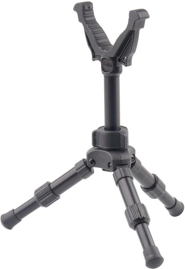 Trójnóg strzelecki o regulowanej wysokości, z możliwością zdemontowania centralnego pałąka i wykorzystania go osobno. Każda z nóżek posiada osobną regulację długości i antypoślizgową nóżkę. Pokryta gumą podpora w kształcie litery V umożliwia bezpieczne i wygodne podparcie dowolnego rodzaju broni …