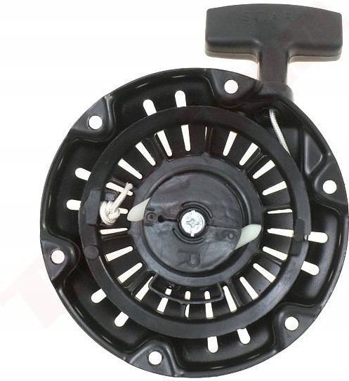 ROZRUSZNIK HONDA GX100 BLACK ( 28400-Z0D-003ZA ) ROZRUSZNIK HONDA GX100 BLACK ( 28400-Z0D-003ZA ) 28400Z0D003ZAB Czym jest rozrusznik i do czego służy? Rozrusznik to jeden z kluczowych elementów układu rozruchowego w kosiarkach spalinowych. Jego głównym zadaniem jest wprawienie wału korbowego w ruch – to właśnie dzięki niemu silnik zasysa mieszankę paliwowo-powietrzną i rozpoczyna pracę. Bez sprawnego rozrusznika nie uruchomisz urządzenia, niezależnie od tego, w jakim stanie jest silnik. Rozrusznik działa mechanicznie – za pomocą linki i sprężyny napędza koło zamachowe, które obraca wał silnika. W jego wnętrzu znajduje się zespół zapadek i sprężyn, które z czasem ulegają zużyciu. To część, która często psuje się z biegiem czasu – najczęstsze problemy to pęknięta sprężyna, ślizgające się zaczepy, zerwana linka albo mechanizm, który nie cofa się po szarpnięciu. Jeśli przy odpalaniu kosiarki linka nie wraca, nie stawia oporu albo coś w środku „przeskakuje” bez reakcji silnika – bardzo możliwe, że winny jest właśnie niesprawny rozrusznik.