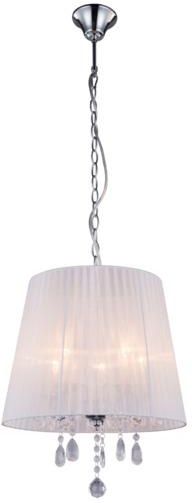 Lampa wisząca CESARE jest unikatowym i nowoczesnym rozwiązaniem oświetlenia salonu, jadalni lub sypialni. Jej wzór łączy style nowoczesny oraz glamour. Lampa zwraca uwagę chromowanym wykończeniem podstawy oraz kloszem z tkaniny ozdobionej akrylowymi kryształkami. Jasna oprawa dodatkowo rozświetla pomieszczenie i optycznie powiększa jego przestrzeń. Dzięki tym zabiegom światło żarówki efektownie załamuje się na licznych szklanych elementach i zapewnia ciekawe oświetlenie wnętrza.Lampa wisząca CESARE posiada oprawę dla żarówek typu E14 o mocy maksymalnej 40W.