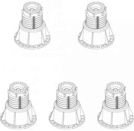 zestaw nóg montażowych do brodzików Livada ilośc: 5 sztuk regulowana wysokość od 85 do 140 mm