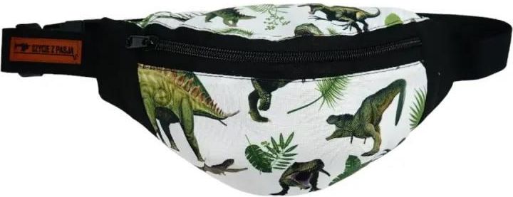 Saszetka Nerka dla Chłopca - Dinozaury to żywy i funkcjonalny dodatek zaprojektowany dla młodych poszukiwaczy przygód, którzy pragną odkrywać piękno natury. Ta stylowa saszetka na biodra ma czarny pasek z regulowanym zapięciem po lewej stronie. Główna komora ma jasny biały kolor, z powtarzającym …