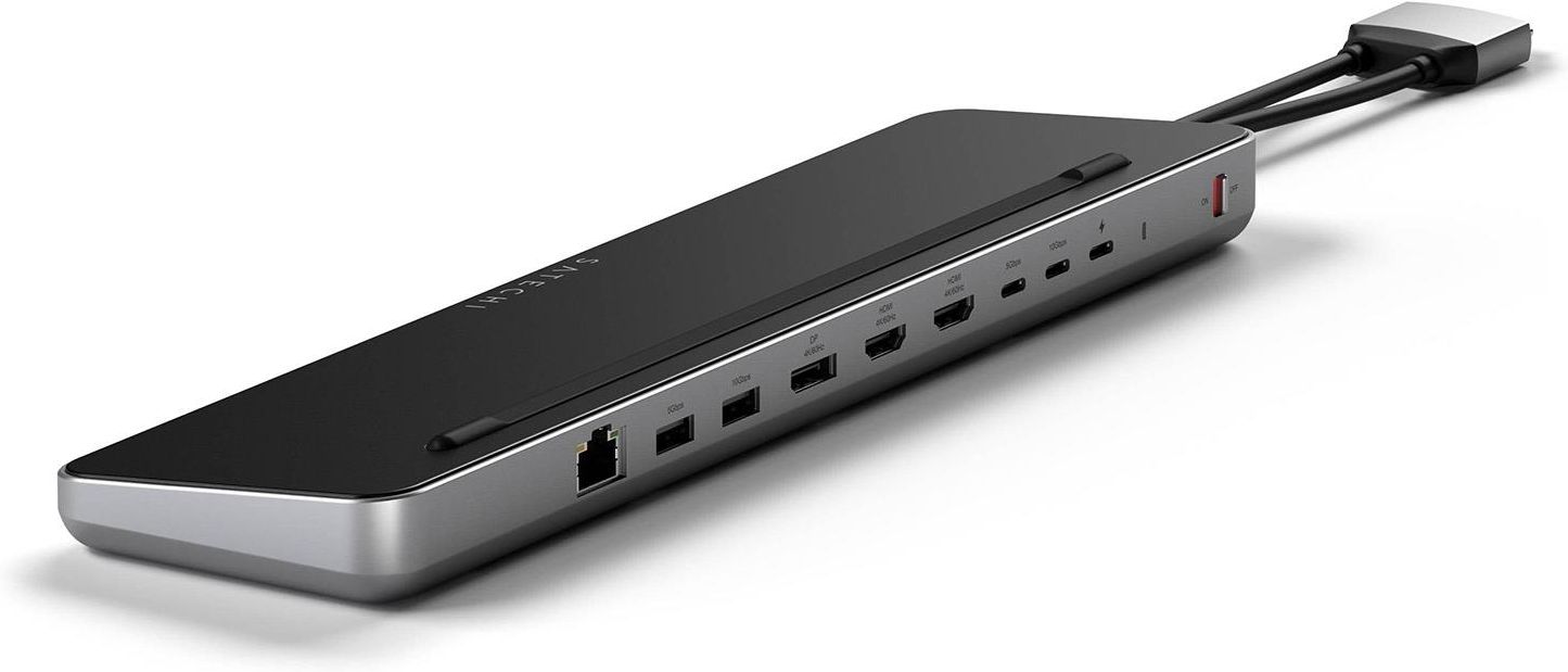 Satechi Dual Dock Stand - stacja dokująca do MacBook z podwójnym USB-C (USB-C PD 75W, 2x USB-C 5Gbps i 10 Gbps, 2x HDMI 2.0, 1x DisplayPort 1.4, 2x USB-A 5Gbps i 10 Gbps, Gigabit Ethernet, 1x M.2 SATA/NVMe SSD Port) (space gray) (ST-DDSM) Satechi Dual Dock Stand - stacja dokująca do MacBook z …