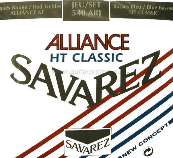 Savarez 540ARJ – struny do gitary klasycznejStruny do gitary klasycznej francuskiej marki Savarez. Firma ta jest jednym z najlepszych światowych producentów strun do szerokiej gamy instrumentów. Produkty Savarez najwyższą jakość zawdzięczają pierwszorzędnym materiałom, ogromnemu doświadczeniu i przełomowym technikom produkcji, opracowanym w ciągu ostatnich dziesięcioleci.Savarez 540ARJ Alliance HT Classic to wysokiej klasy, innowacyjne struny do gitary klasycznej wykonane z fluorocarbonu. Struny wiolinowe są cieńsze niż nylonowe odpowiedniki i zapewniają bardzo przejrzyste brzmienie na całej swojej długości, nawet w najwyższych pozycjach gryfu. Jednocześnie pozwalają na wydobywanie pełnej palety niuansów brzmieniowych. Struny basowe serii ALLIANCE są wytwarzane technikami bardziej zbliżonymi do tradycyjnych niż w przypadku bardzo elastycznej serii CORUM. Są one bardziej sztywne i doskonale sprawdzają się w bardziej zdecydowanych, agresywniejszych technikach gry. Zapewniają stały opór pod palcami, szybką odpowiedź i bogate w harmoniczne brzmienie.Savarez 540ARJ to komplet o naciągu mieszanym – standardowym w przypadku strun wiolinowych i wysokim w przypadku strun basowych. Najważniejsze cechy: Naciąg: normalny (struny wiolinowe) / wysoki (struny basowe) Seria Alliance HT Classic Materiał: fluorocarbon (Alliance KF) + owijka na strunach basowych Grubości strun: .024, .027, .033, .029, .035, .044